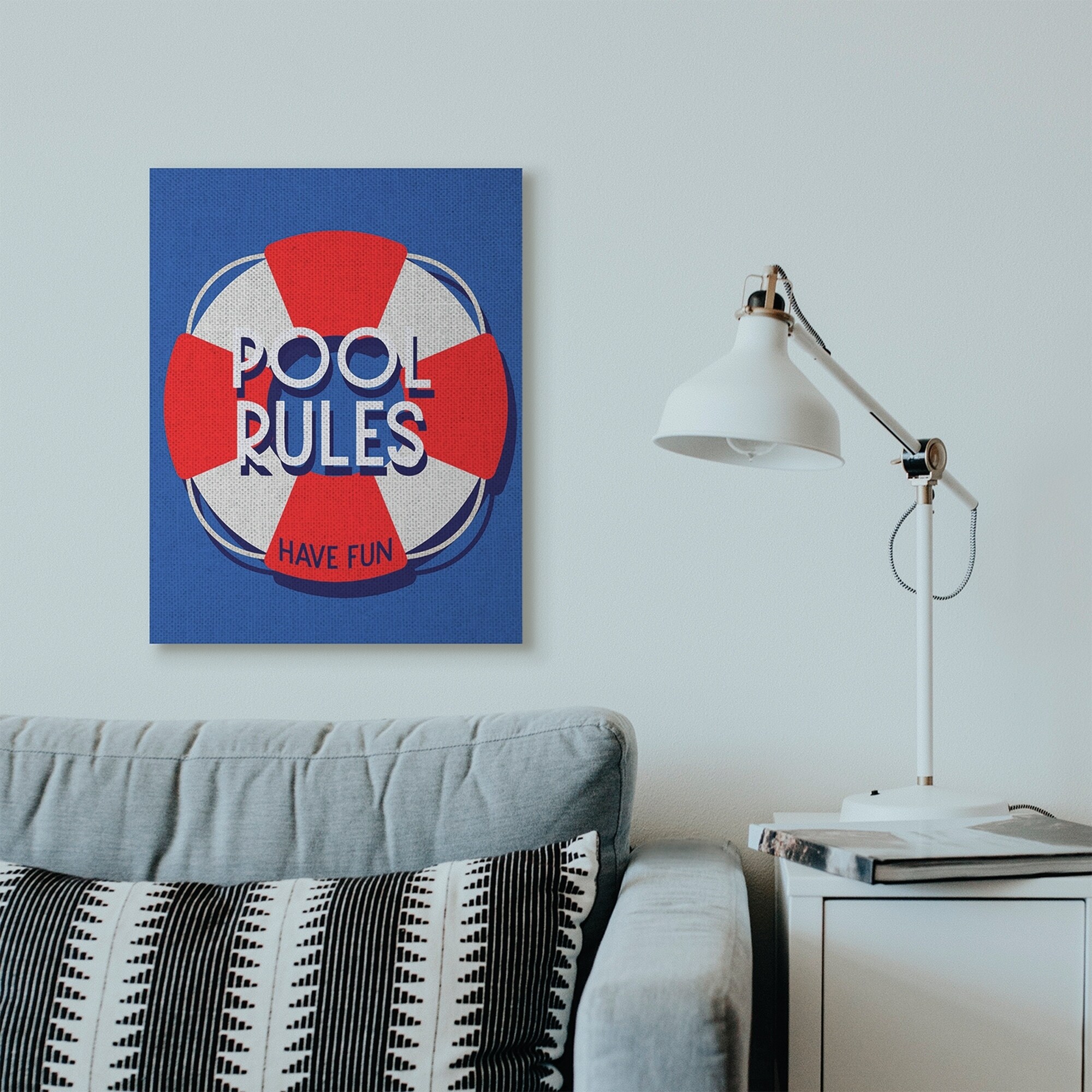 Stupell Pool Rules Beach Coast Ocean Blue Red Word Design,16x20, Proudly Made in USA - Multi-Color