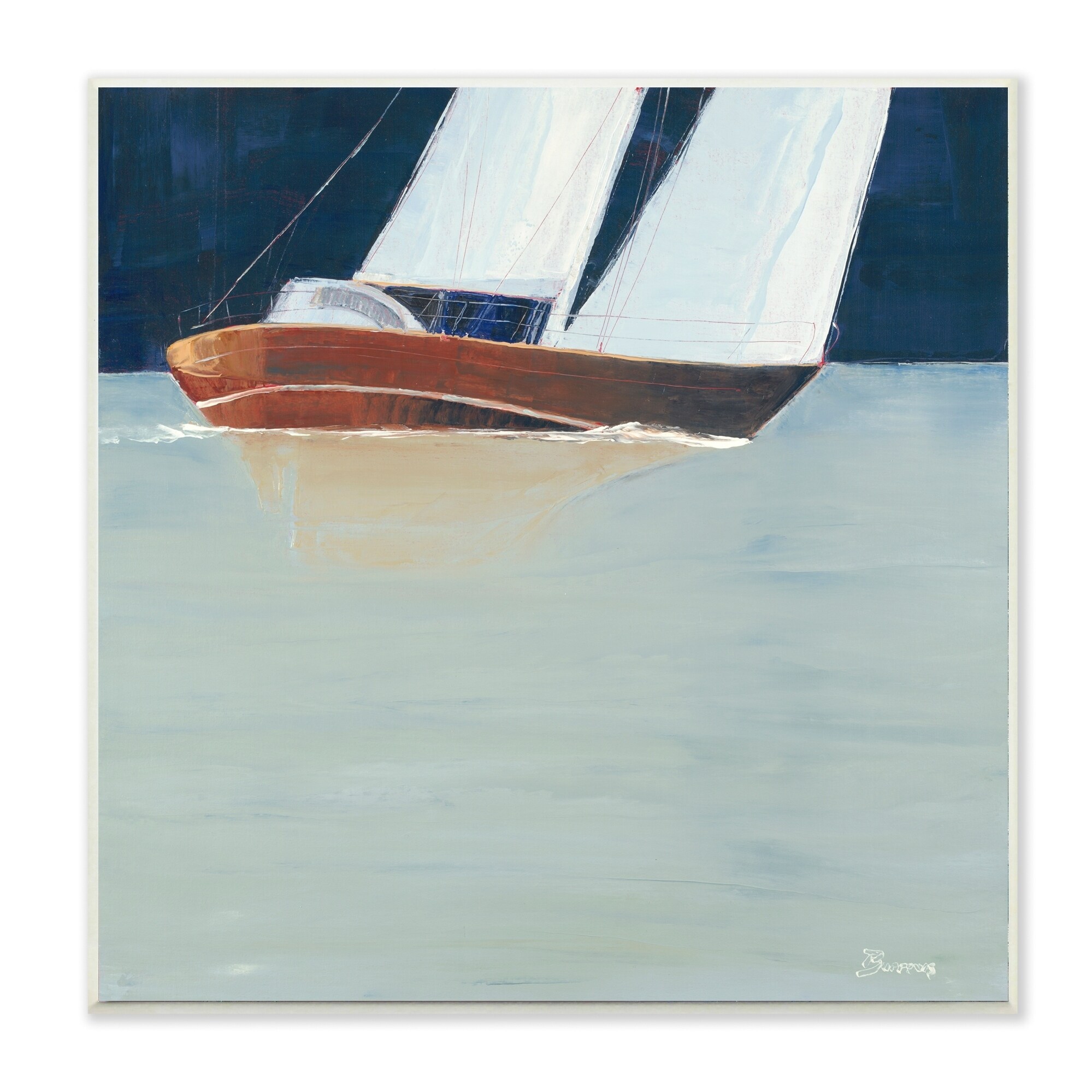 Stupell Industries Calm Transparent Sea Sailboat Ocean Blue Brown Beach Painting,12x12, Wood Wall Art