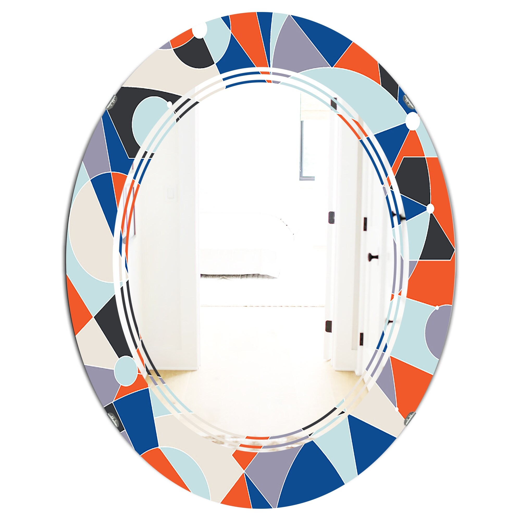 Designart 'Retro Geometric Grid III' Printed Modern Round or Oval Wall Mirror - Triple C