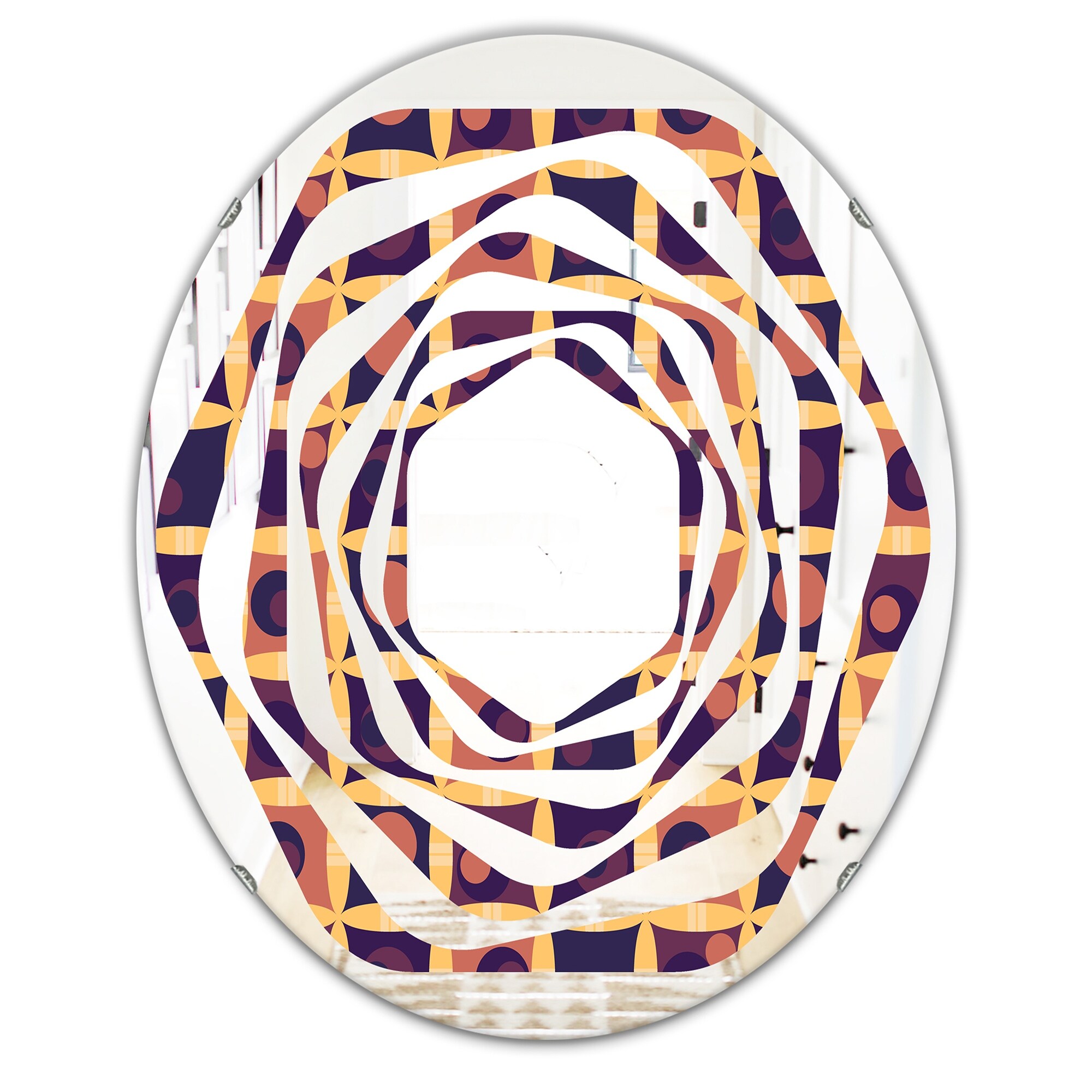 Designart 'Retro Grid in Orange' Printed Modern Round or Oval Wall Mirror - Whirl