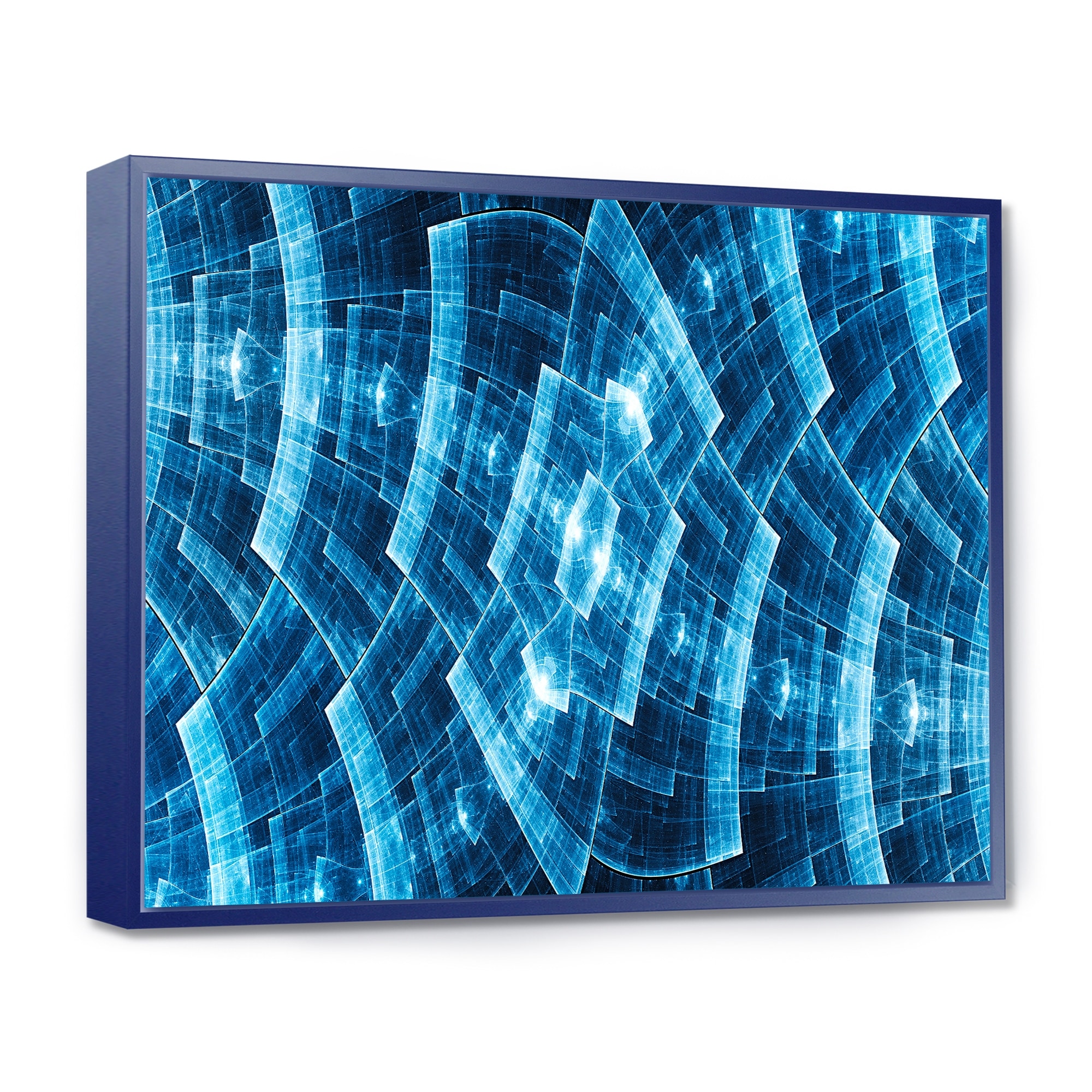 Designart "Blue Protective Metal Grids" Abstract Framed Canvas Art Print