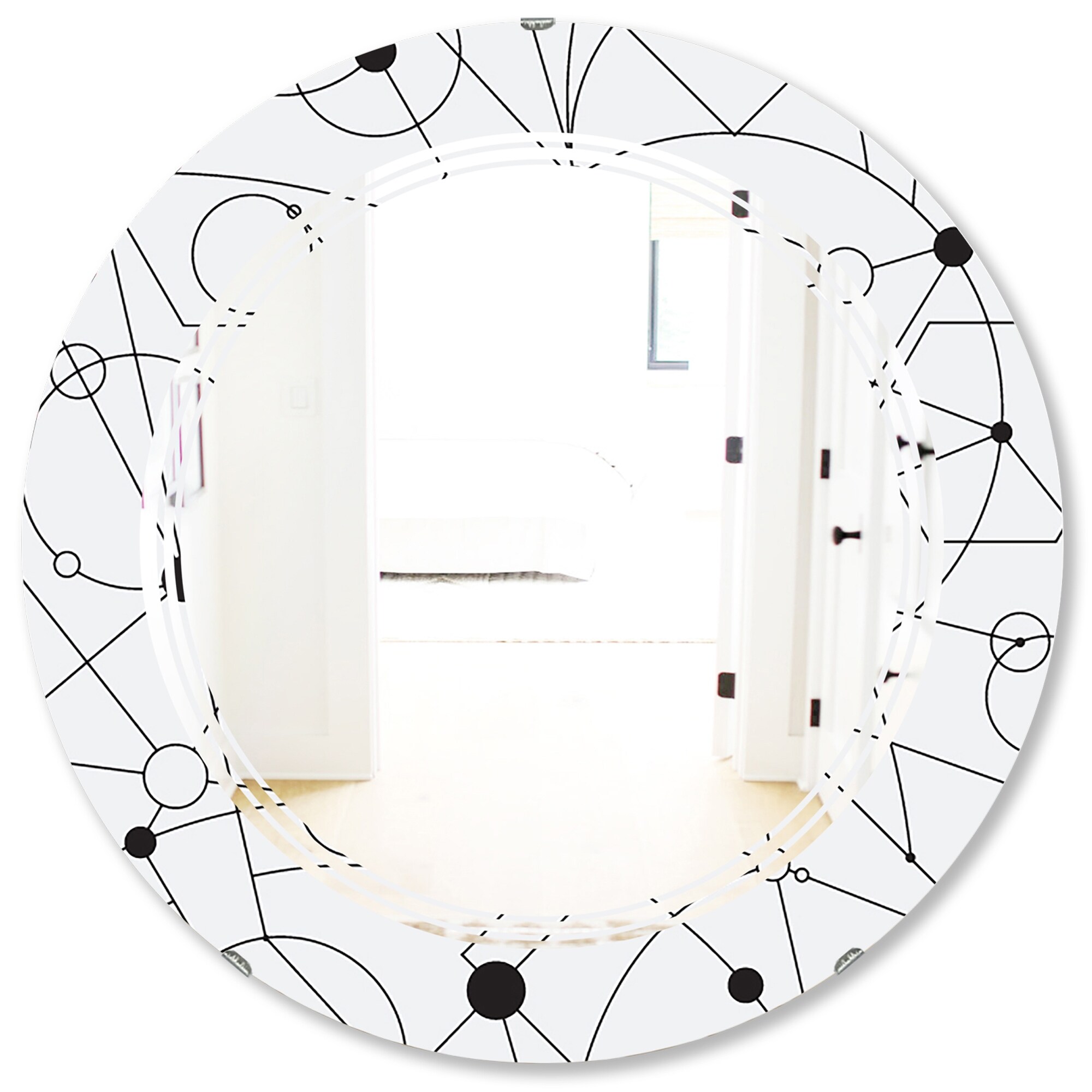 Designart 'Retro Geometric Grid IV' Printed Modern Round or Oval Wall Mirror - Triple C