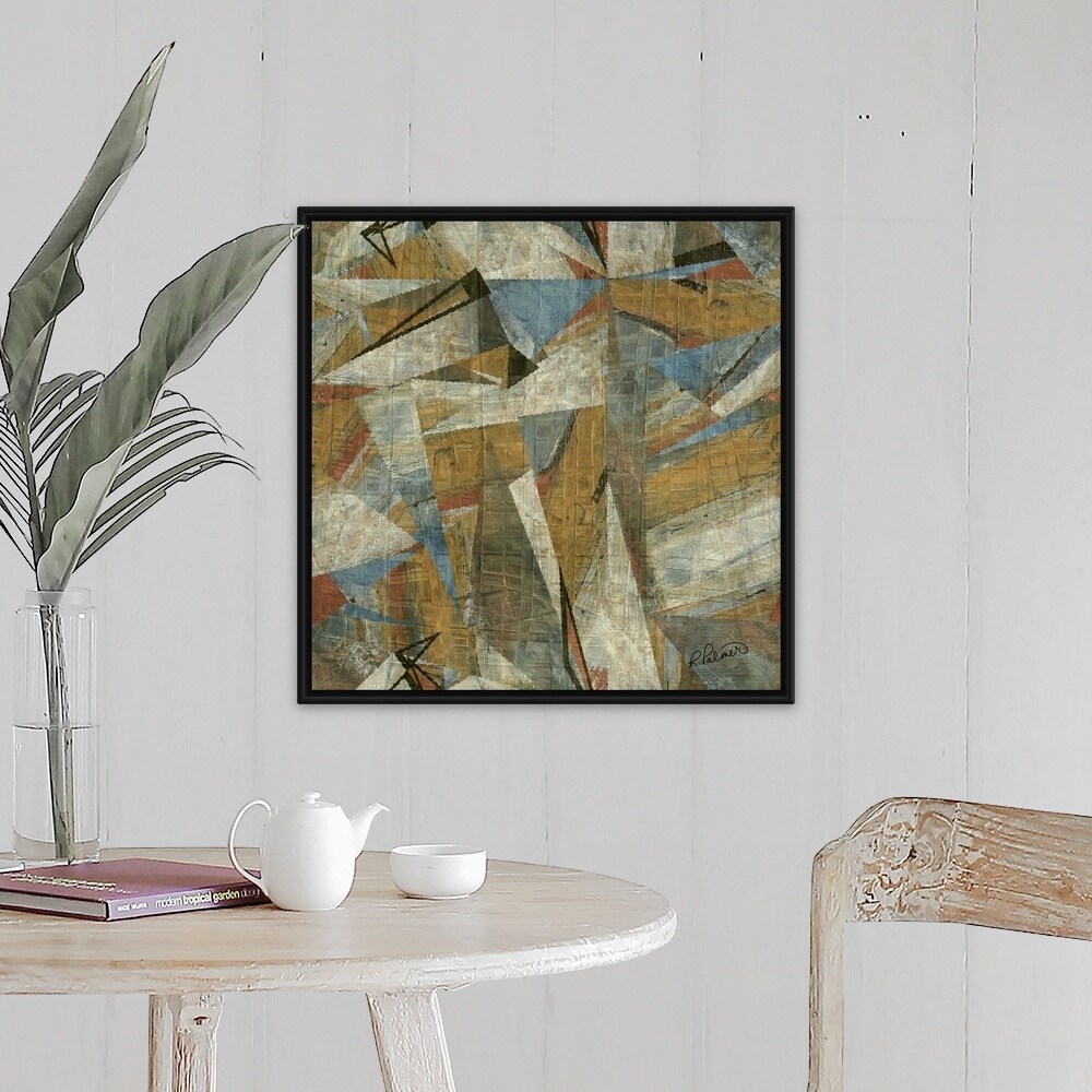 "Geometric Grid Neutral One" Black Float Frame Canvas Art
