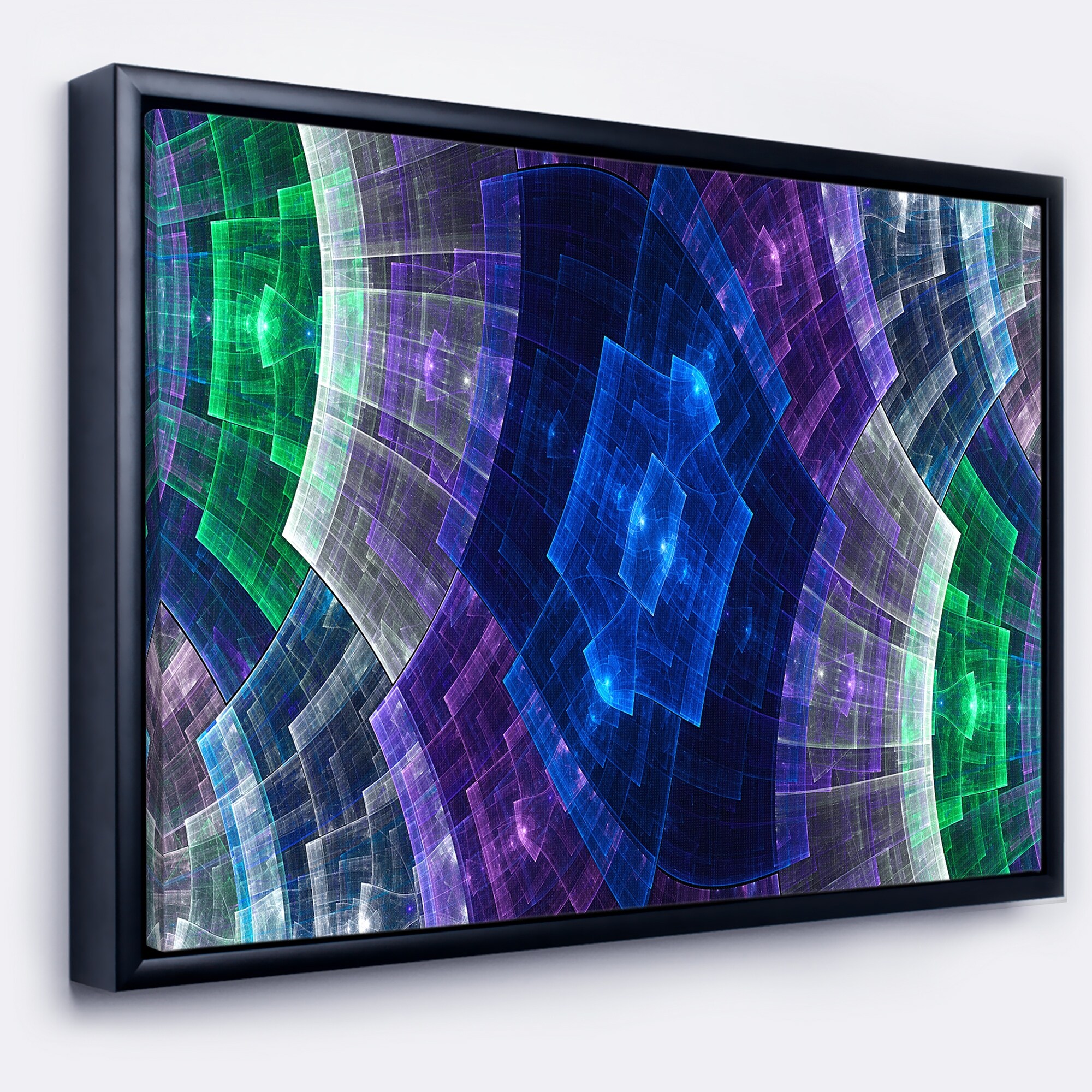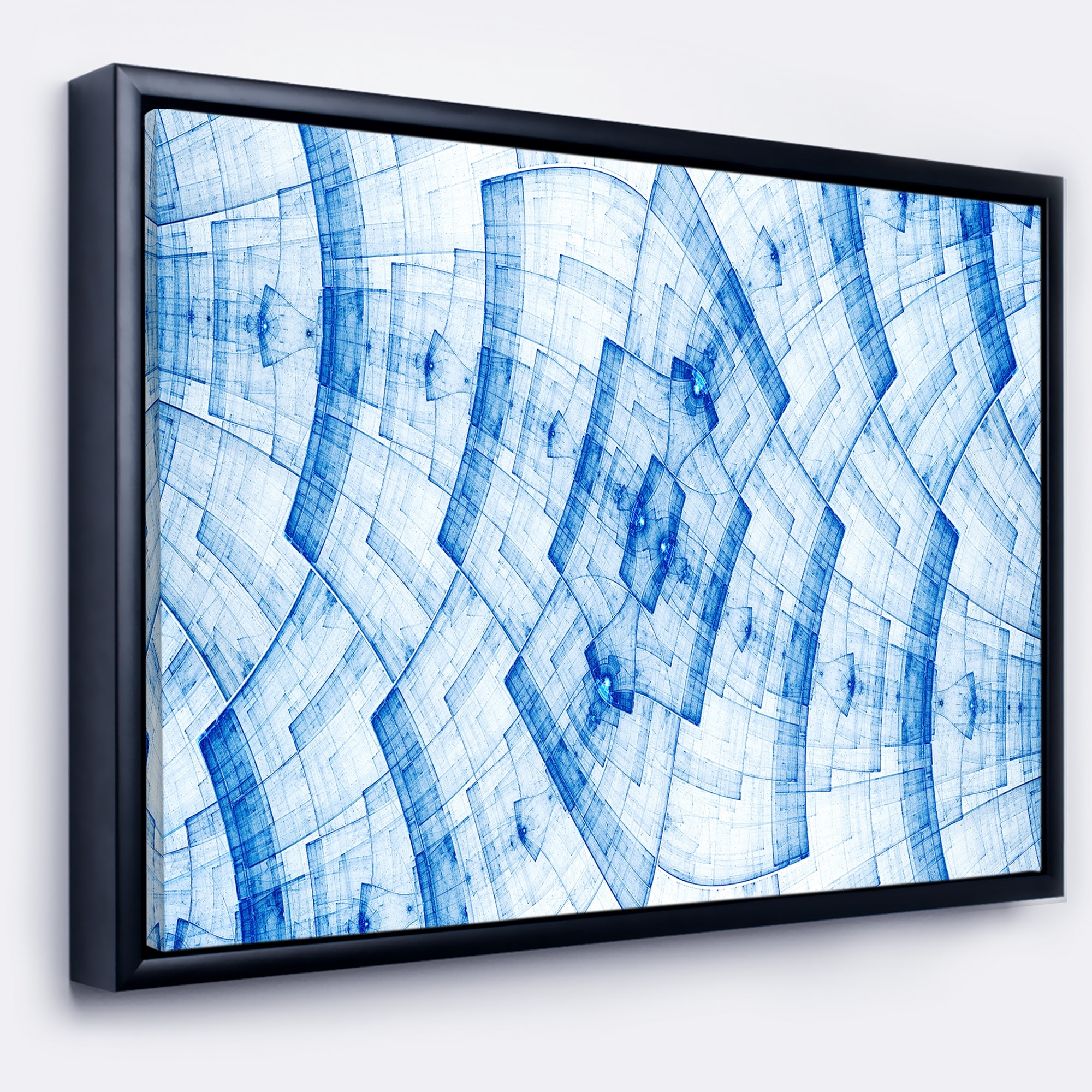 Designart "Blue Fractal Flower Pattern Grid" Abstract Art on Framed Canvas
