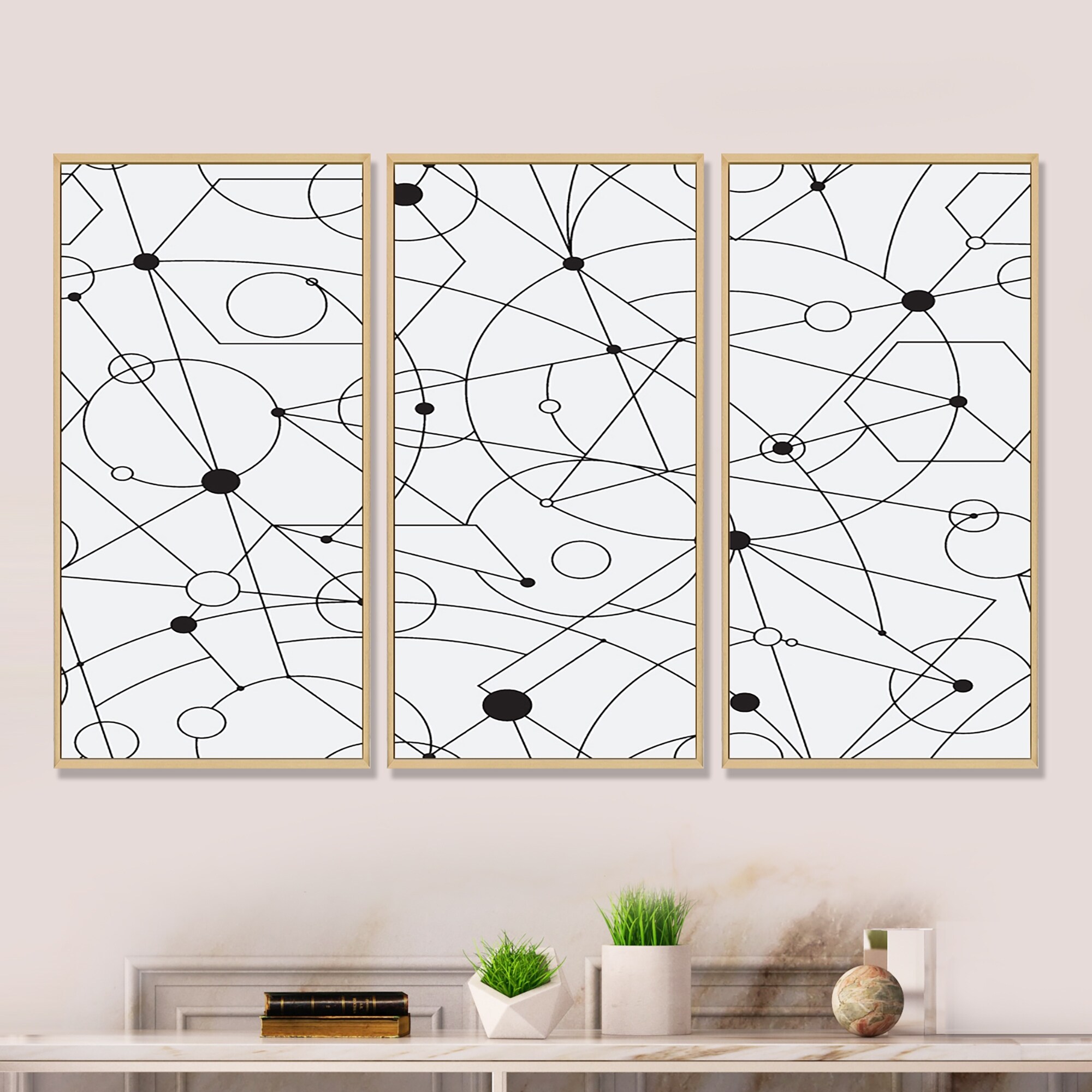 Designart "Retro Geometric Grid IV" Mid-Century Modern Framed Canvas Wall Art Print Set of 3 - 4 Colors of Frames