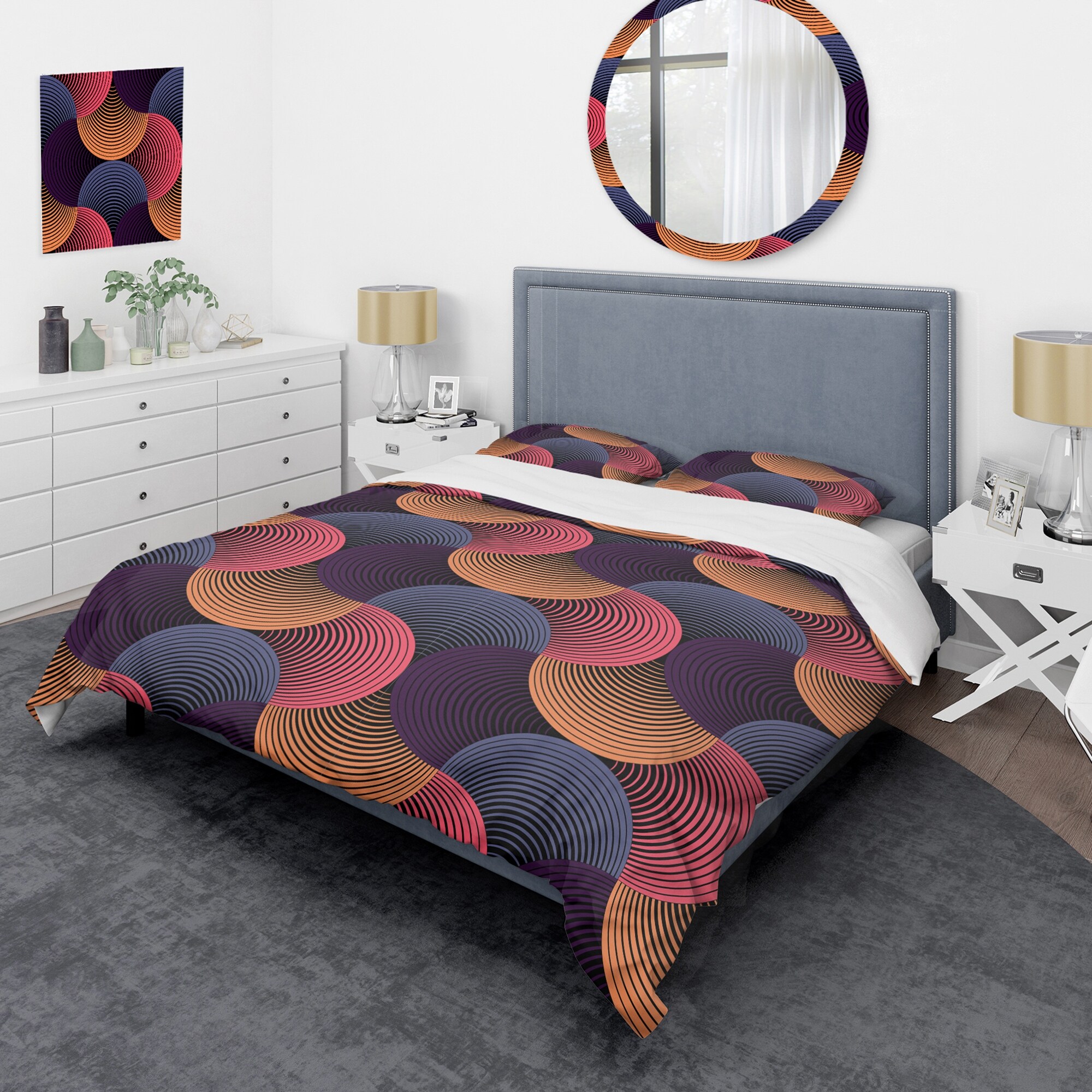Designart 'Ornate Geometric Circle Grid Ii' Modern Duvet Cover Set