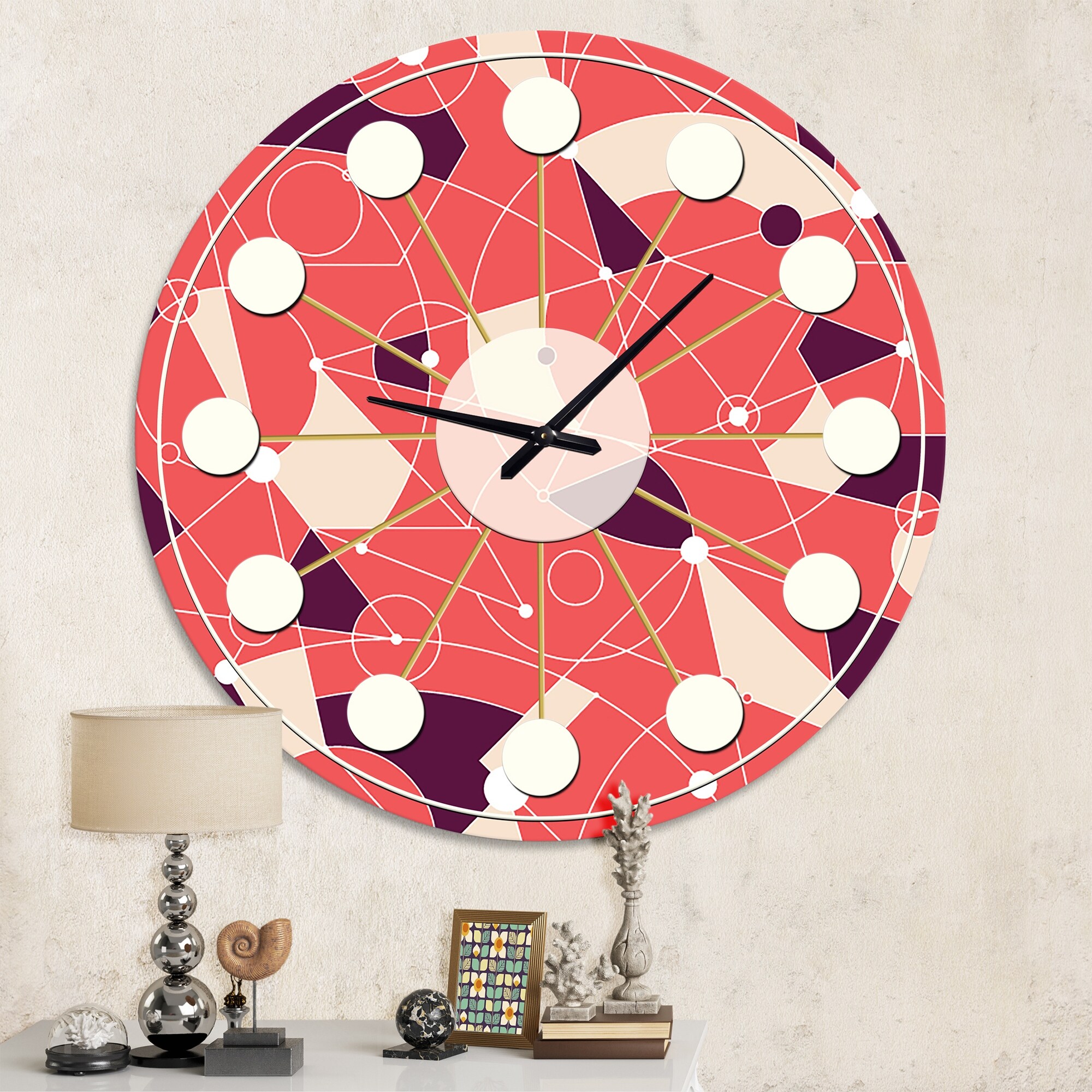 Designart 'Retro Geometric Grid I' Mid-Century wall clock