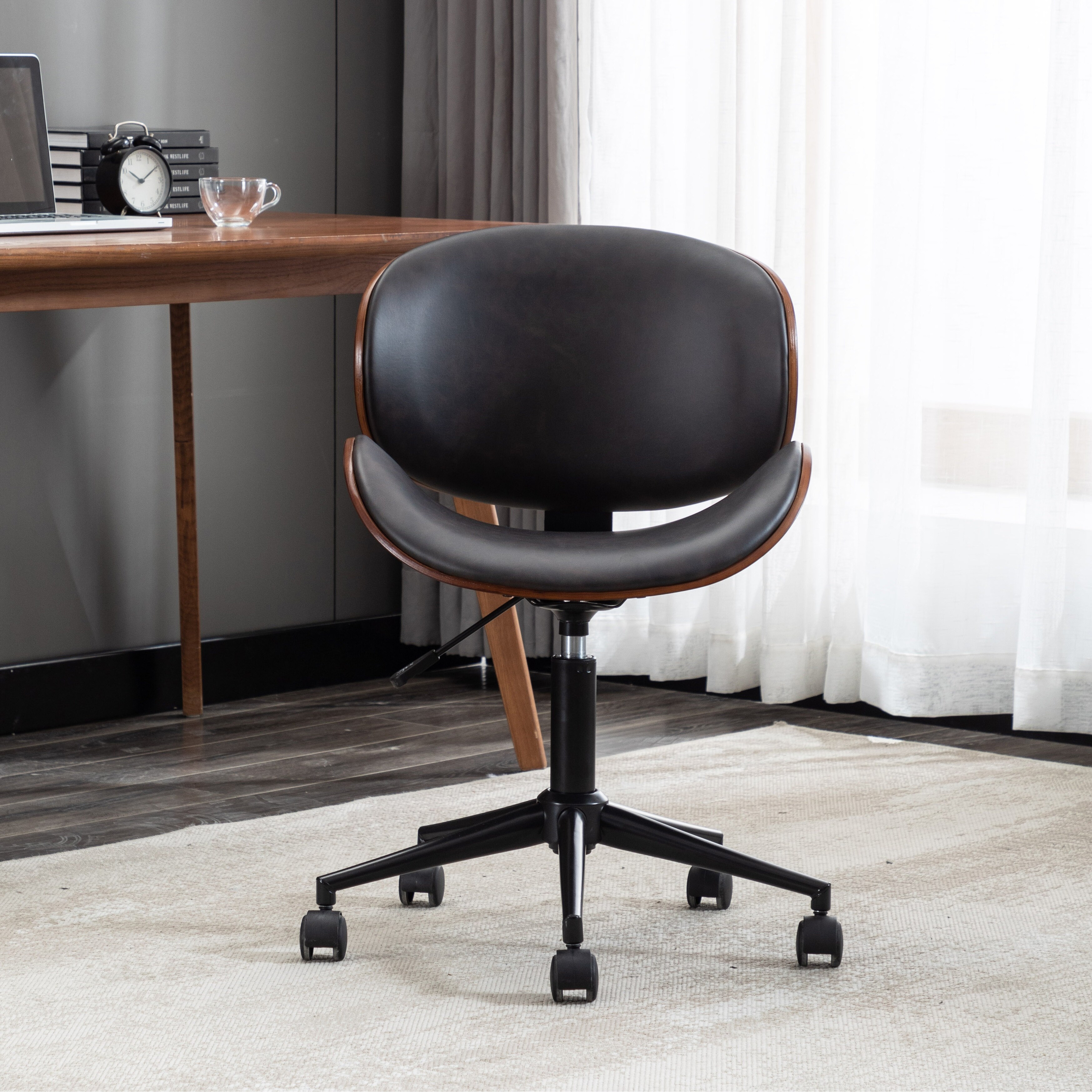 Glitzhome 48-inch Mid-century Adjustable Faux Leather Office Chair
