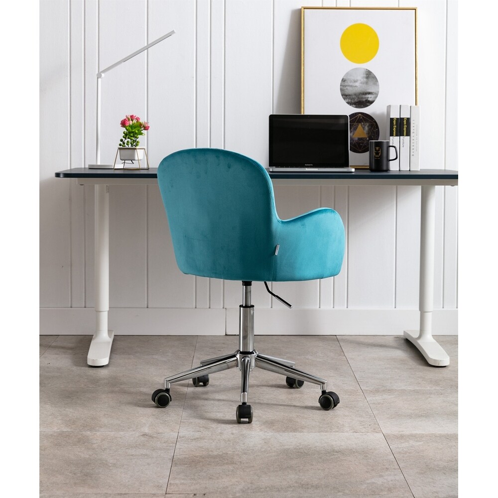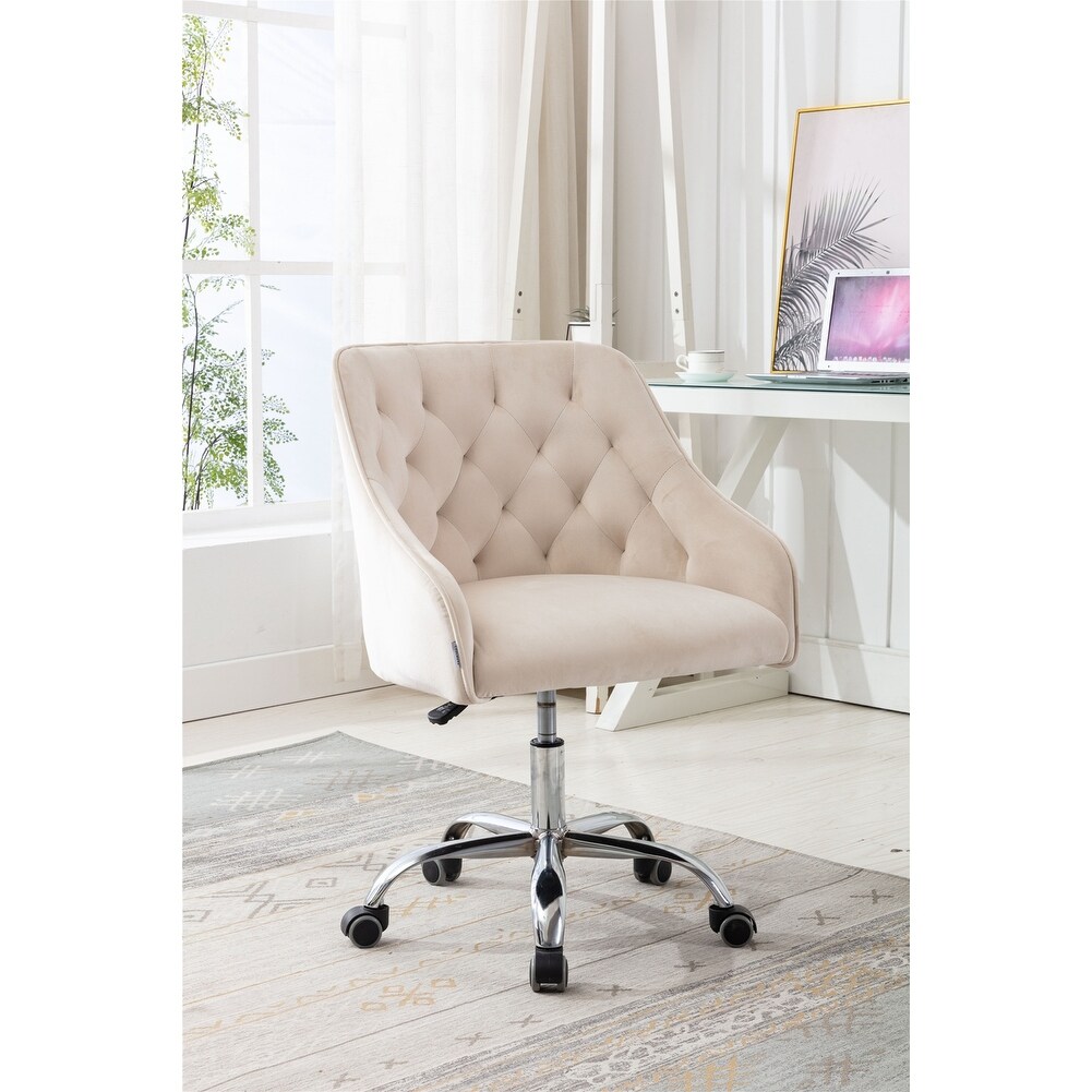 Velvet Swivel Tufted Adjustable Height Home Office Chair with Gold Base