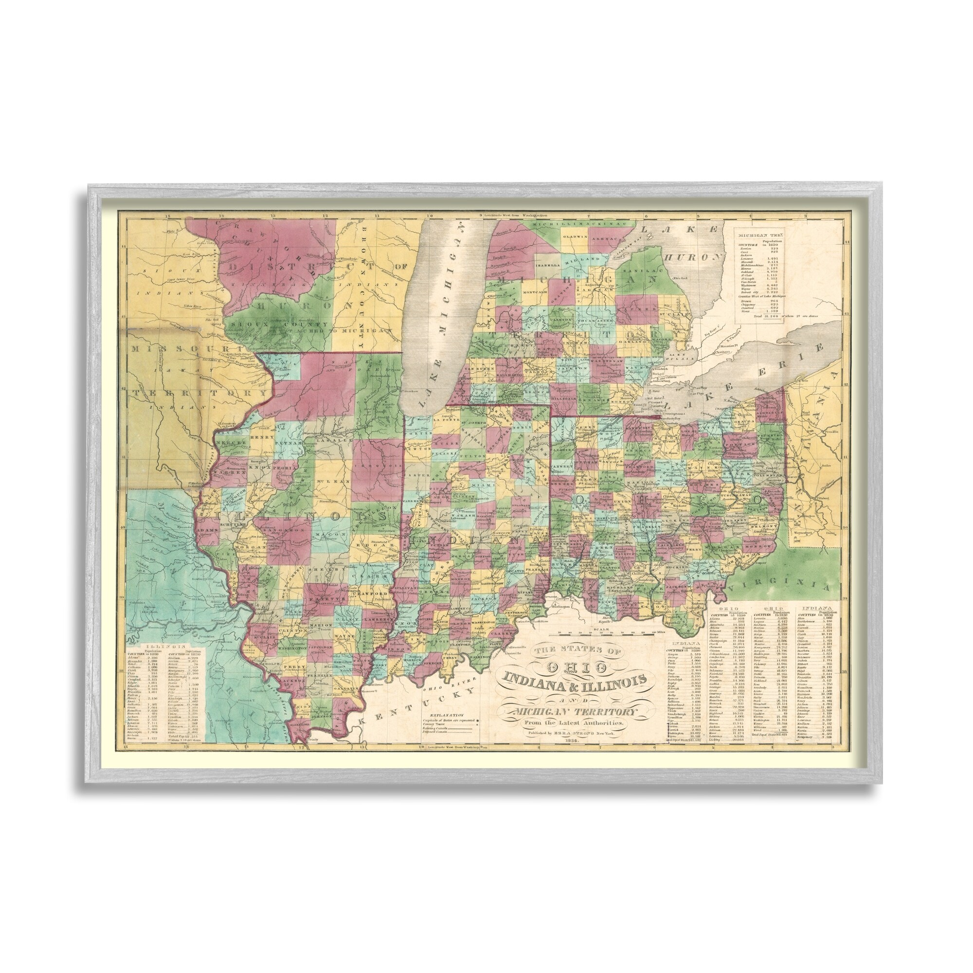 Stupell Industries Vintage US State Map Ohio Indiana Illinois Cartography Framed Wall Art