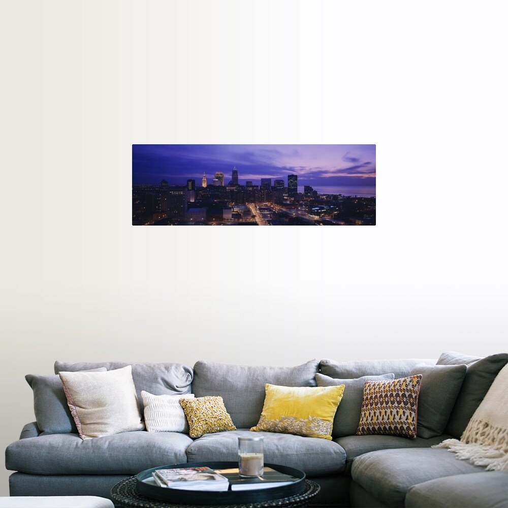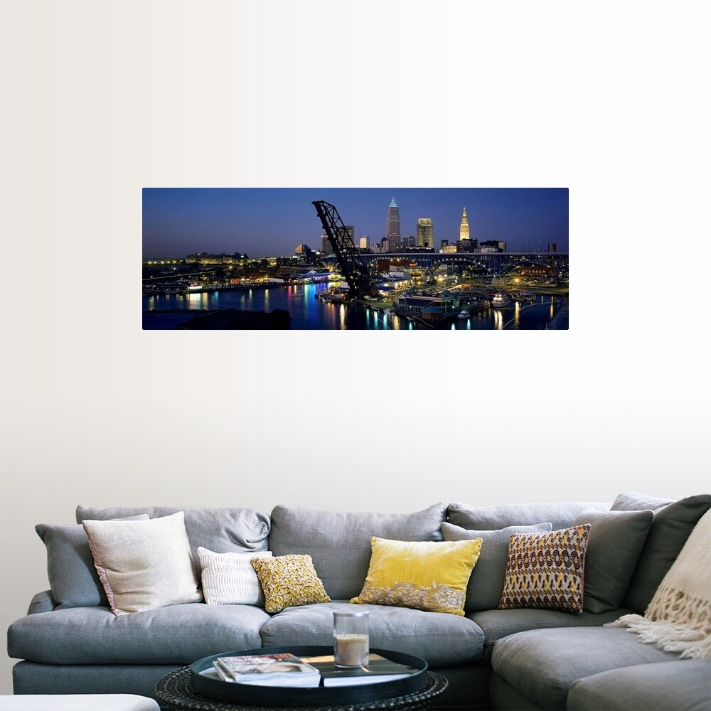 Easy Art Prints Panoramic Image 'Buildings lit up at night in a city, Cleveland, Cuyahoga County, Ohio' Canvas Art