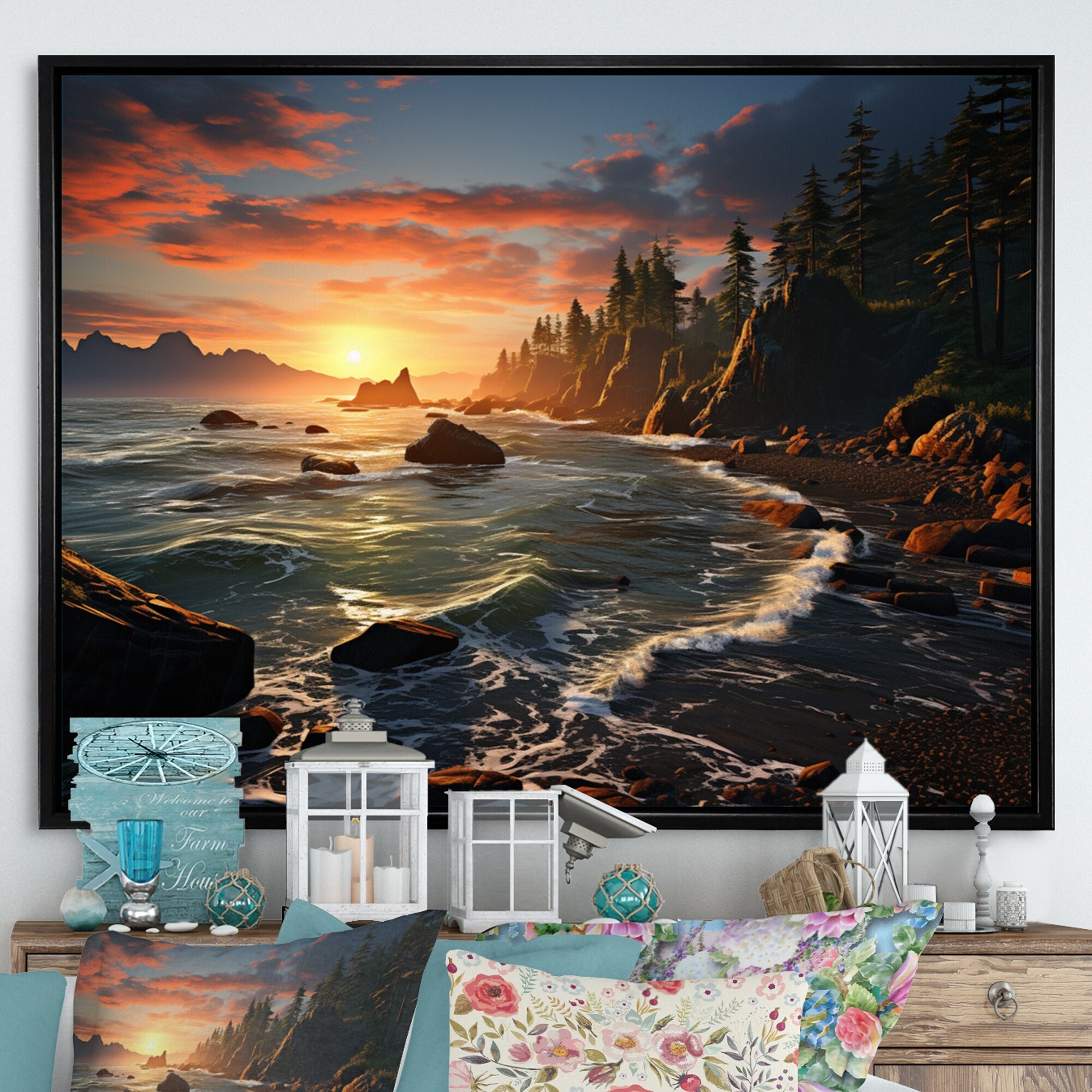 Designart "Olympic National Park Coast" Sea & Shore Framed Wall Art Set of 3 - 4 Colors of Frames