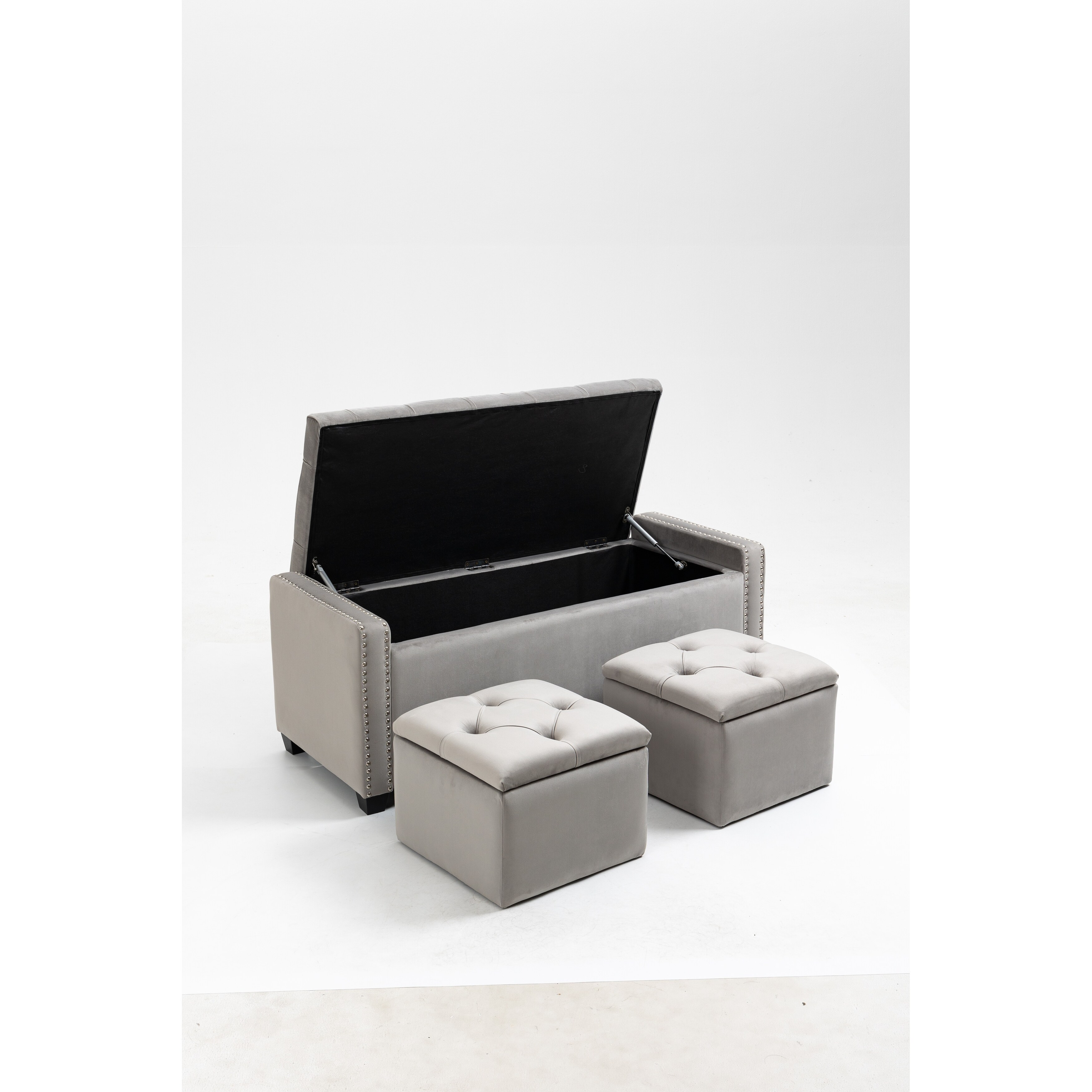 Silver Nailheads Ottoman Trim with Storage, Set of 3