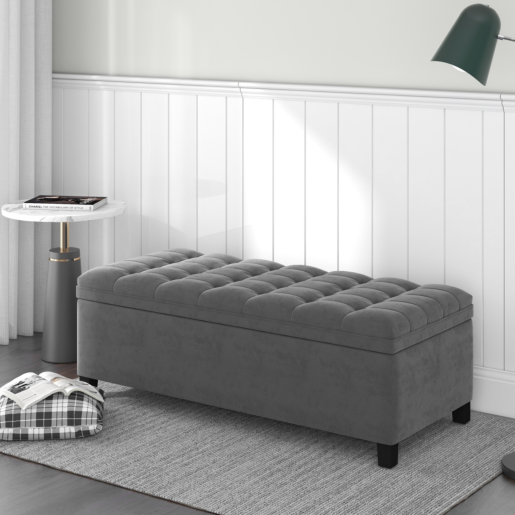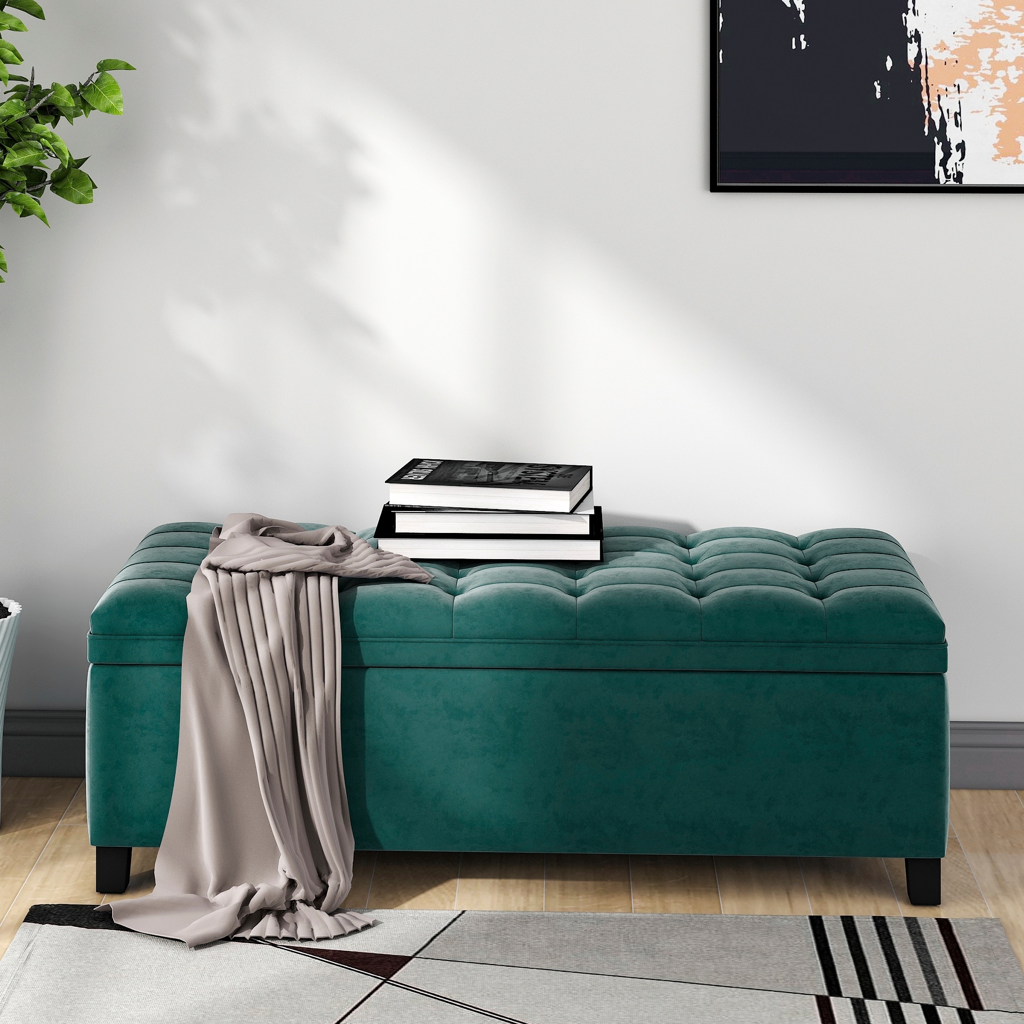 Tufted Storage Ottoman Bench Velvet Upholstered Storage Bench with Button and Flip Top for Living Room, Bedroom