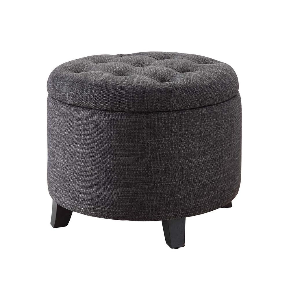 Transitional Dark Charcoal Gray Fabric Upholstered Round Storage Ottoman