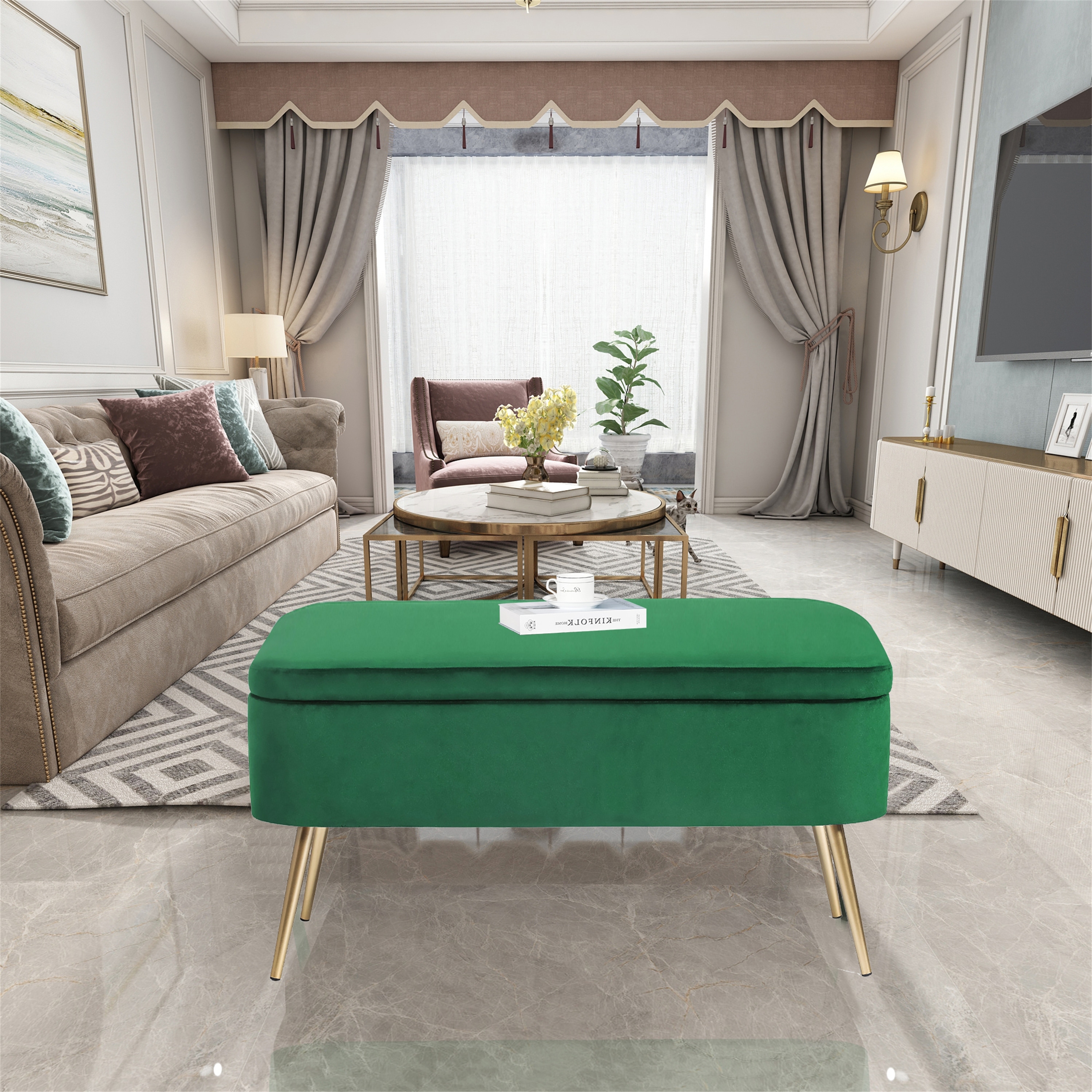 Adeco Velvet Storage Ottoman Footrest Lift Top Storage Ottoman Bench