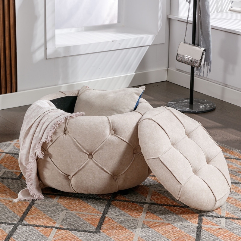 Round Storage Ottoman Tray Top Table Storage Stool Living Room Chill