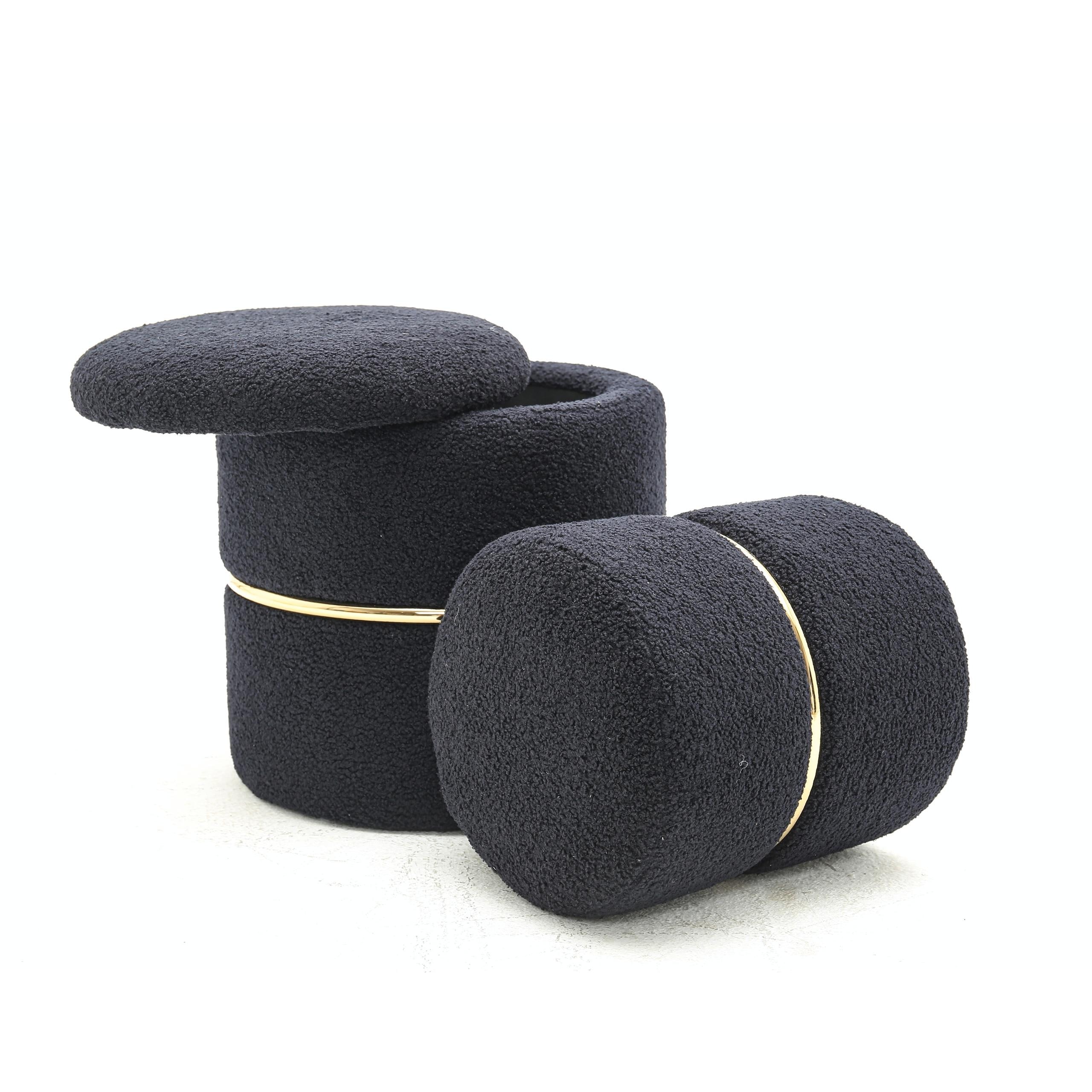 Modern Hollow Upholstery Storage Ottoman with Two Small Footstools