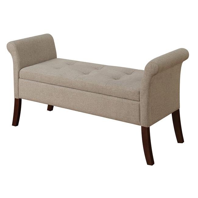Storage Ottoman Bench with Arms Upholstered Tufted Storage Bench, Fabric Tan Bench