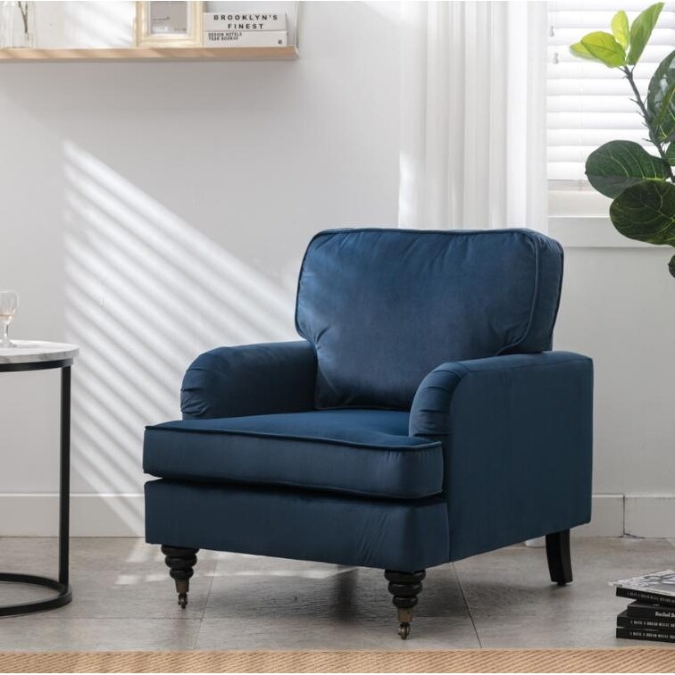 34" Velvet Chair Sofa, Sofa Armchair with Casters, Mid-Century Upholstered Comfort Oversized Arm Single Sofa with Wooden Legs
