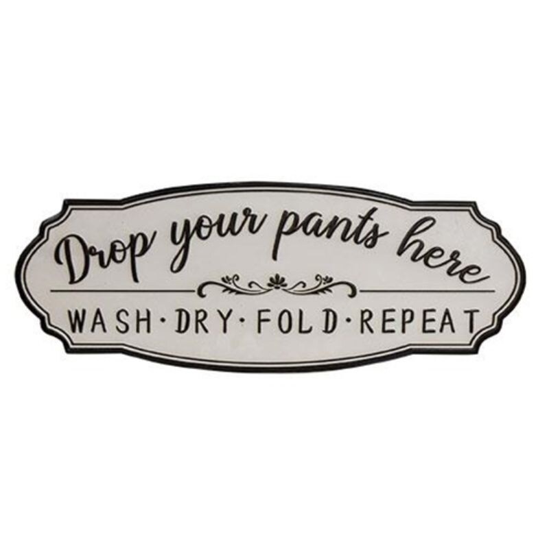 Drop Your Pants Here Laundry Metal Sign - 9"H x 24"W x 0.25"D