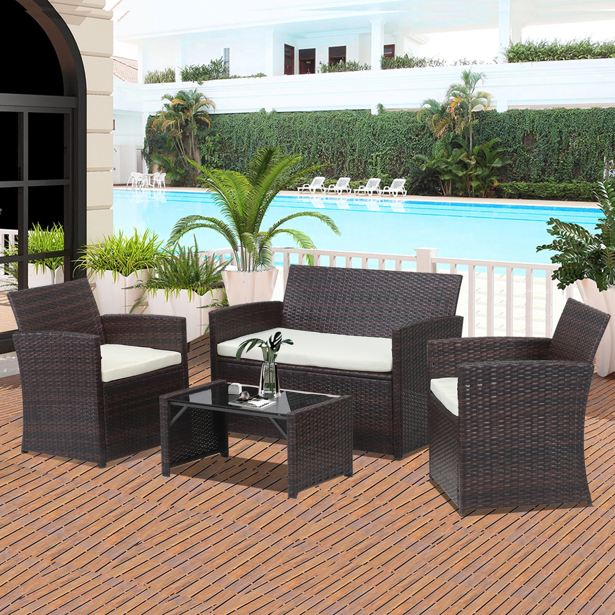 4 Pcs Outdoor PE Rattan Patio Furniture Sofa Set