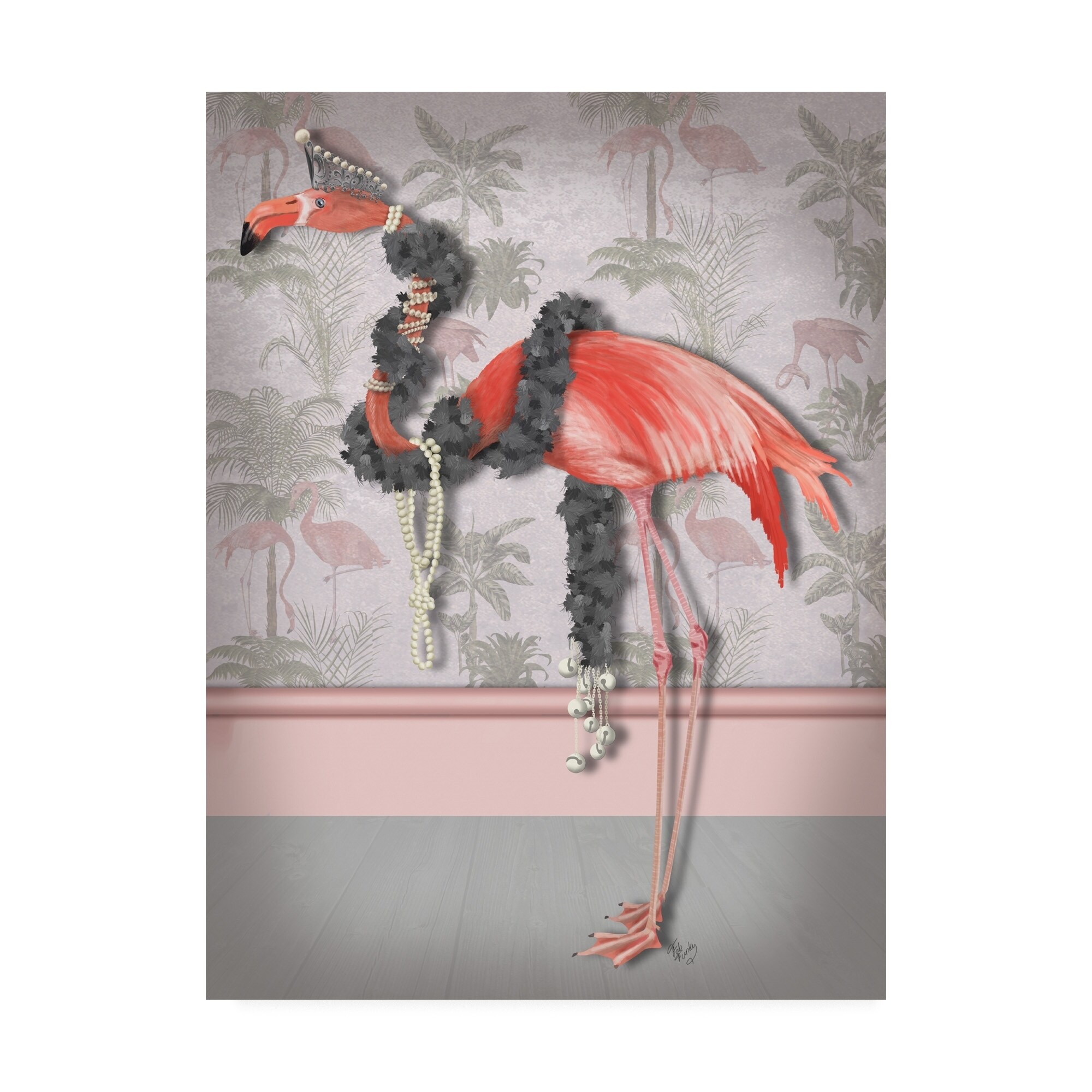 Fab Funky 'Flamingo and Pearls, Full' Canvas Art