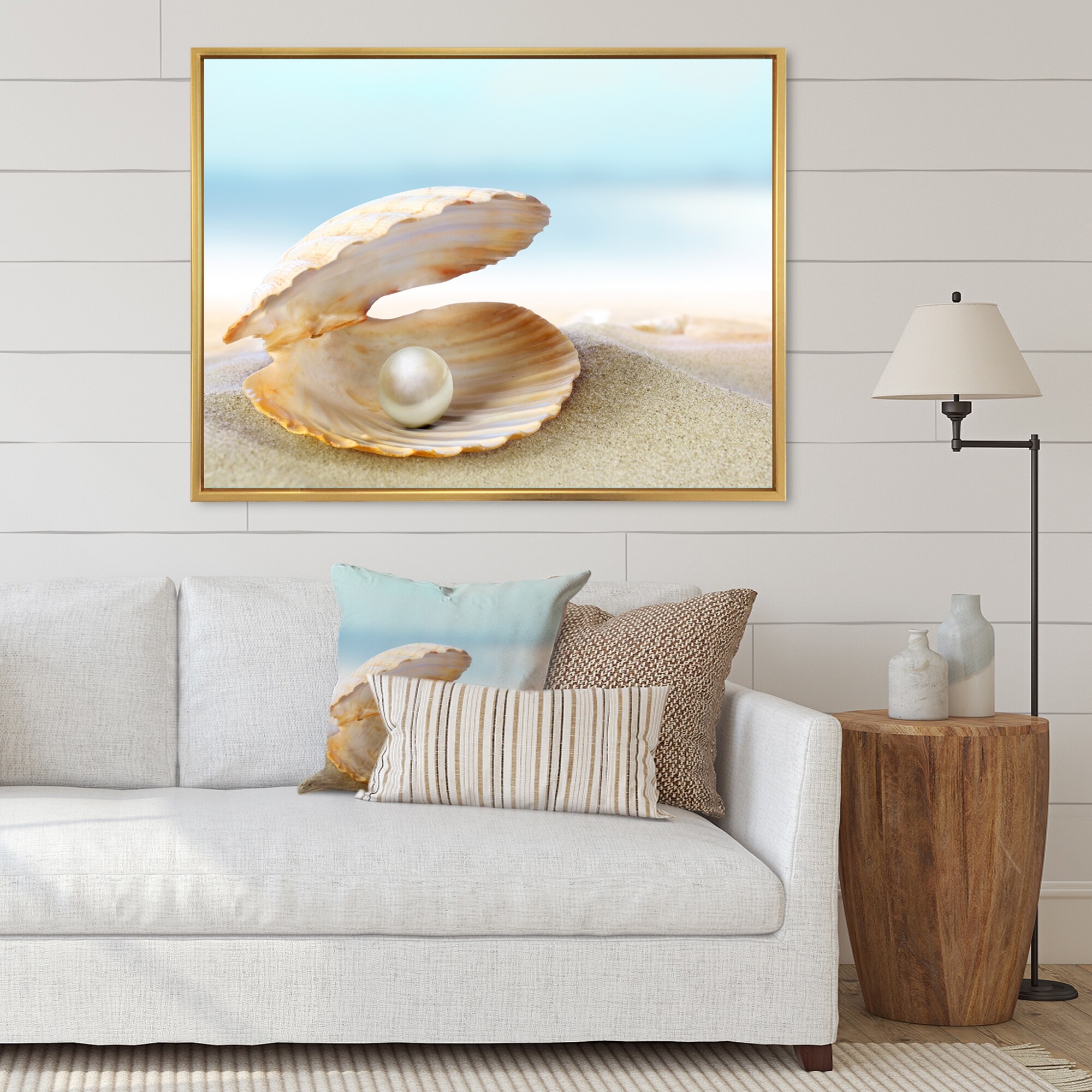 Designart "Shell With A Pearl" Nautical & Coastal Framed Canvas Wall Art Print