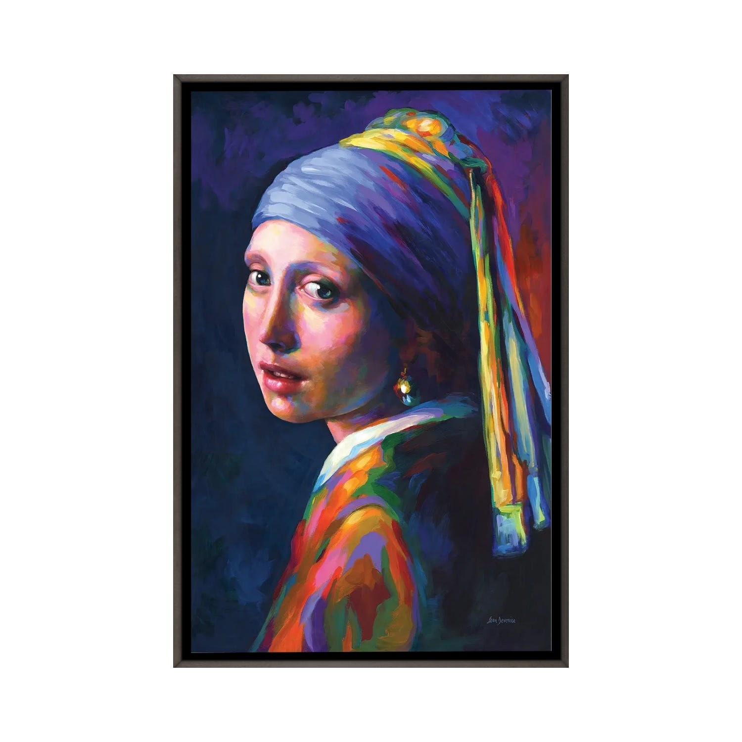 iCanvas "Girl With A Pearl Earring ,A Homage to Vermeer" by Leon Devenice Framed