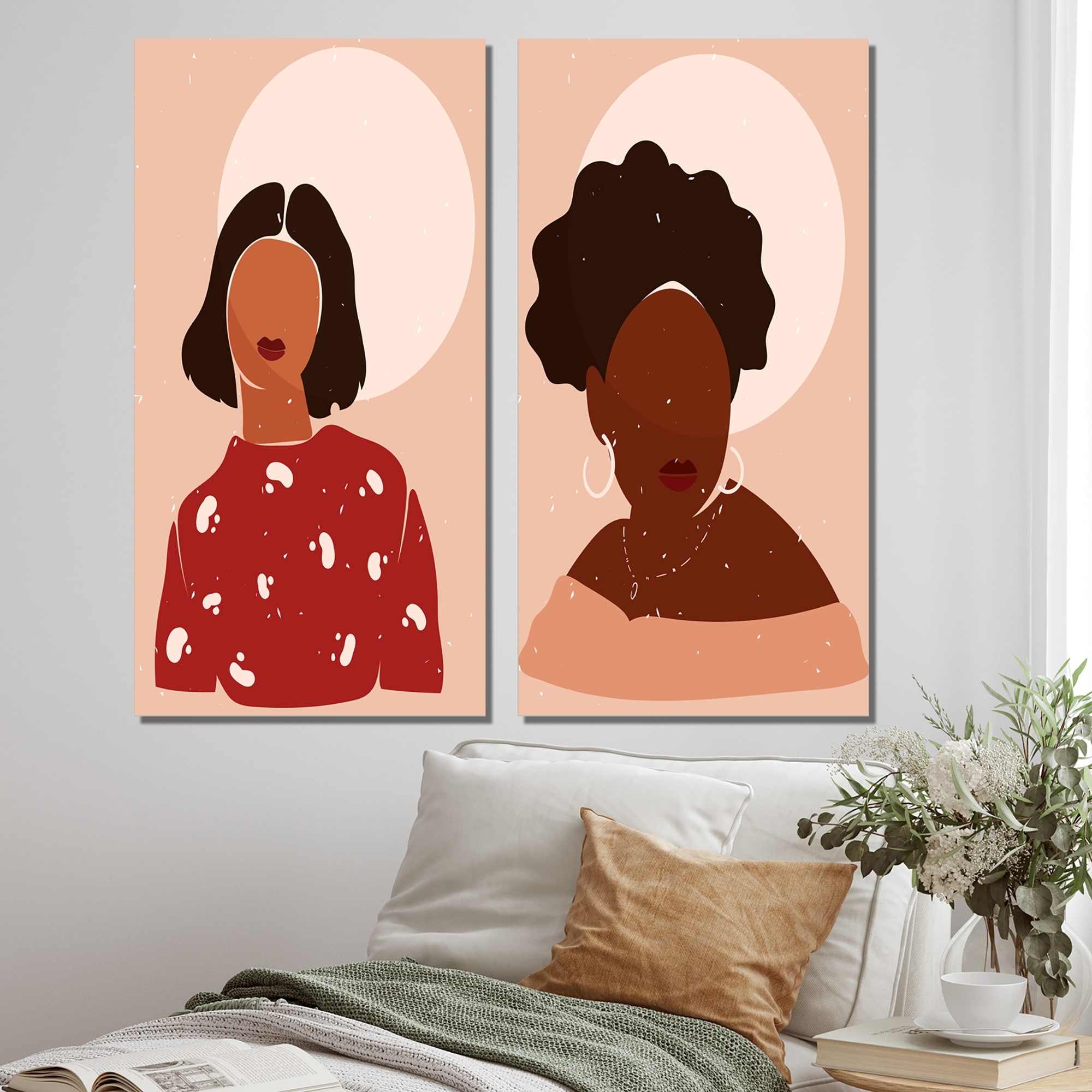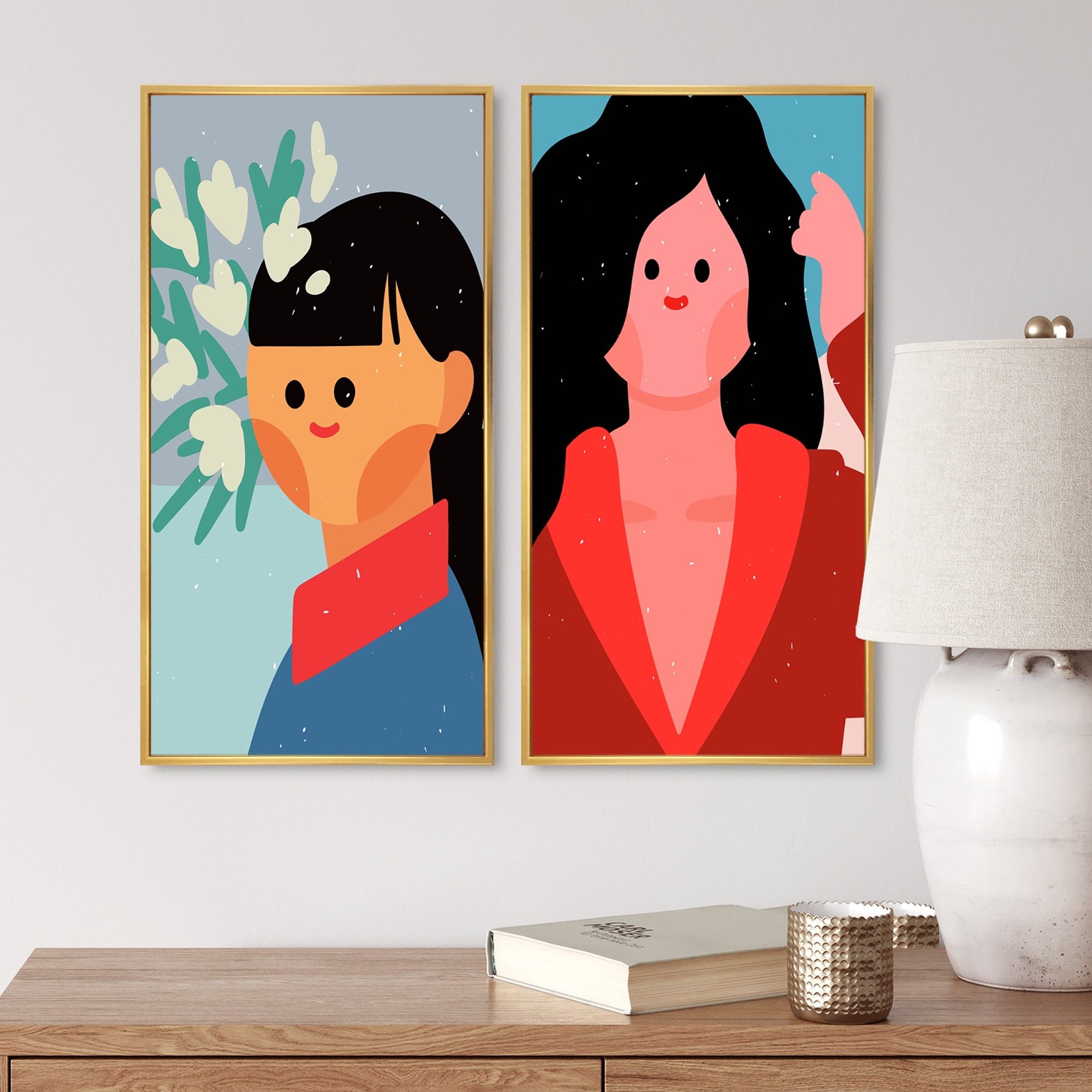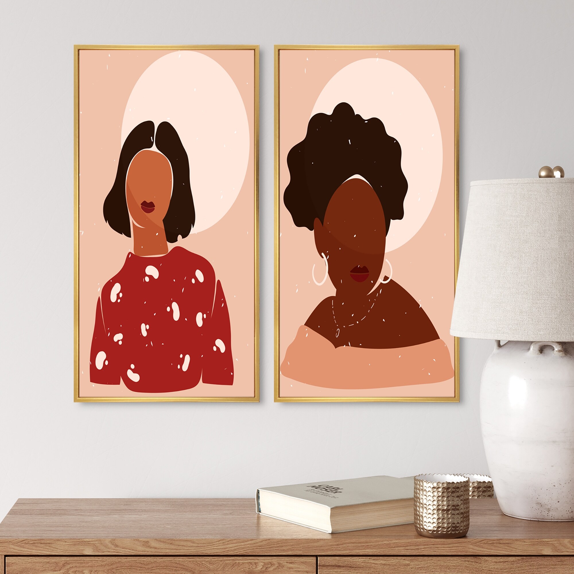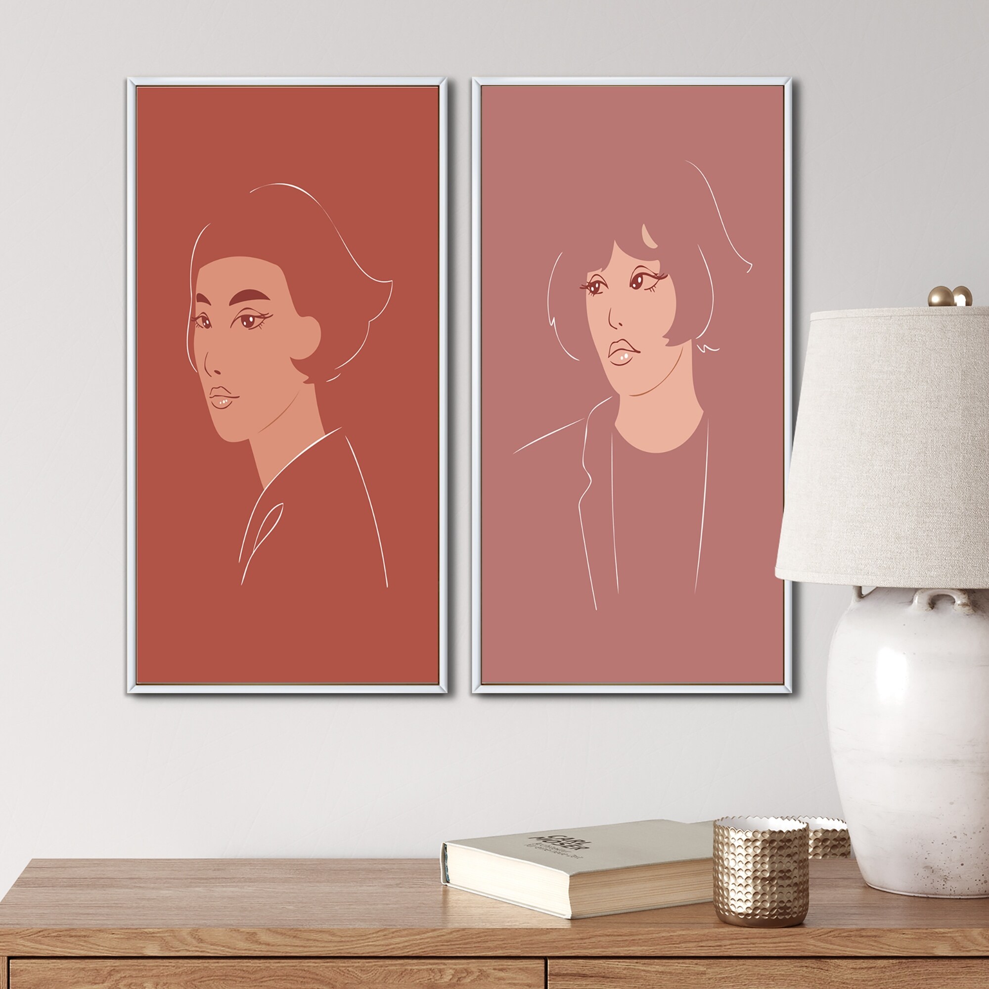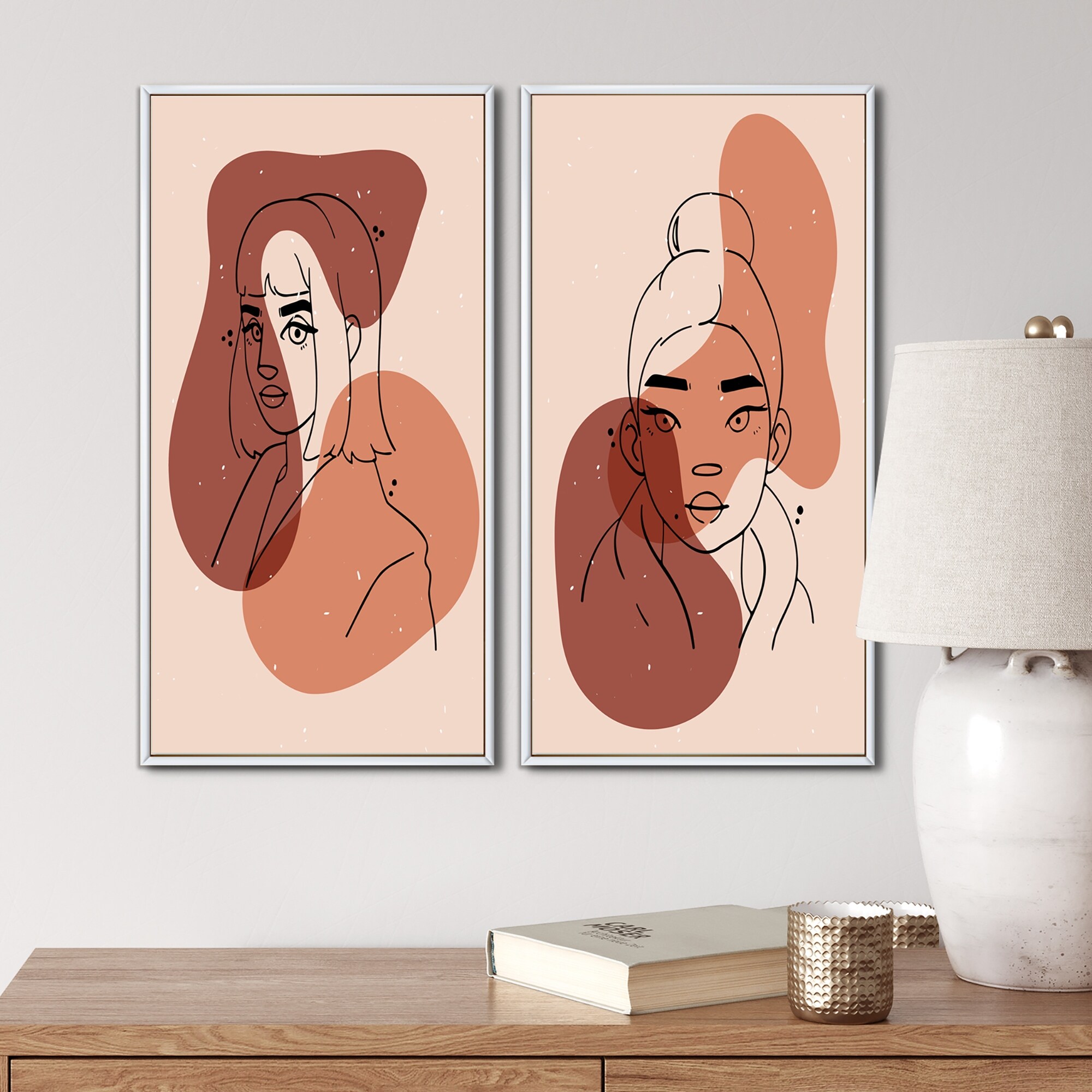 Designart "Abstract Minimal Portraits of Young Women III" People Framed Art Set of 2 Pieces