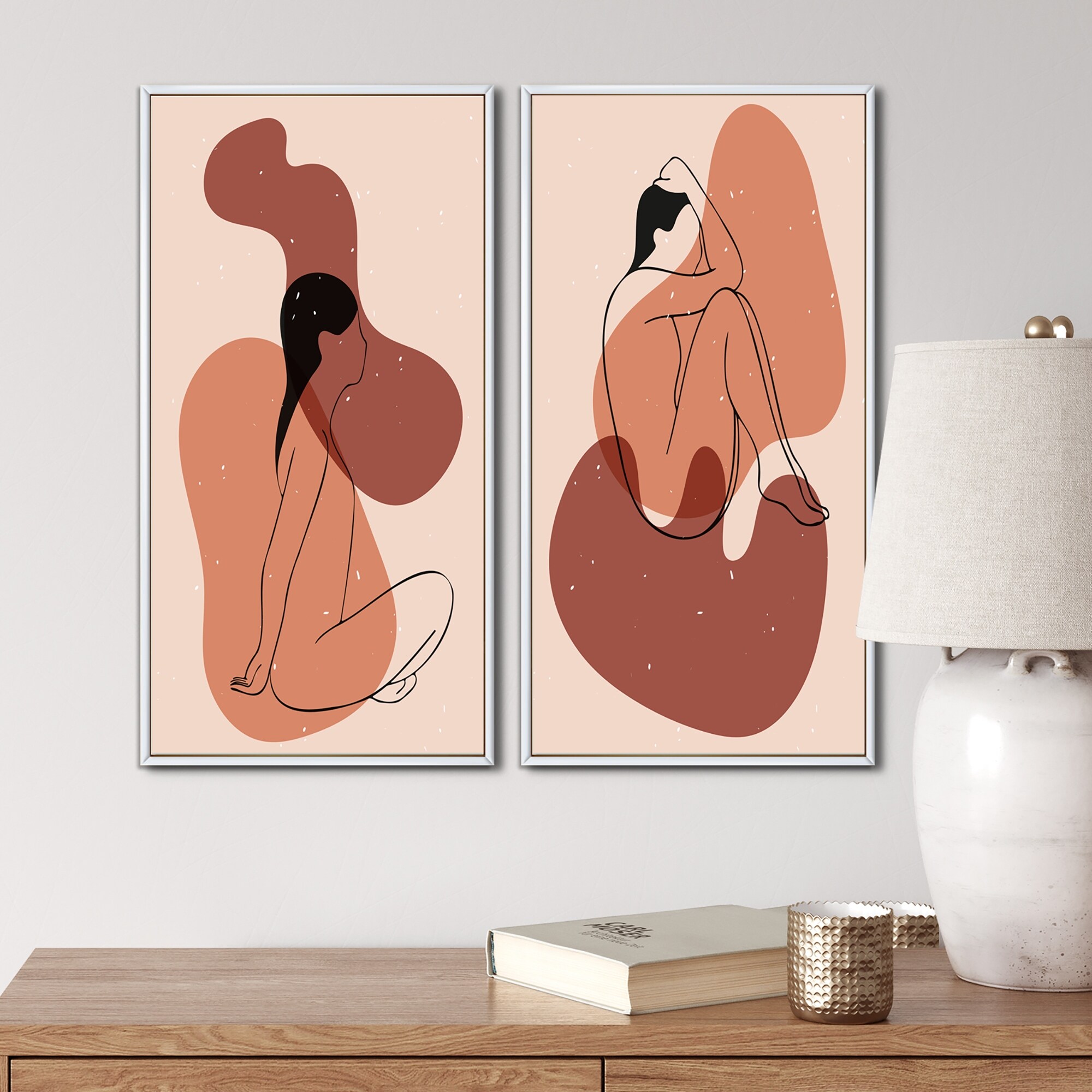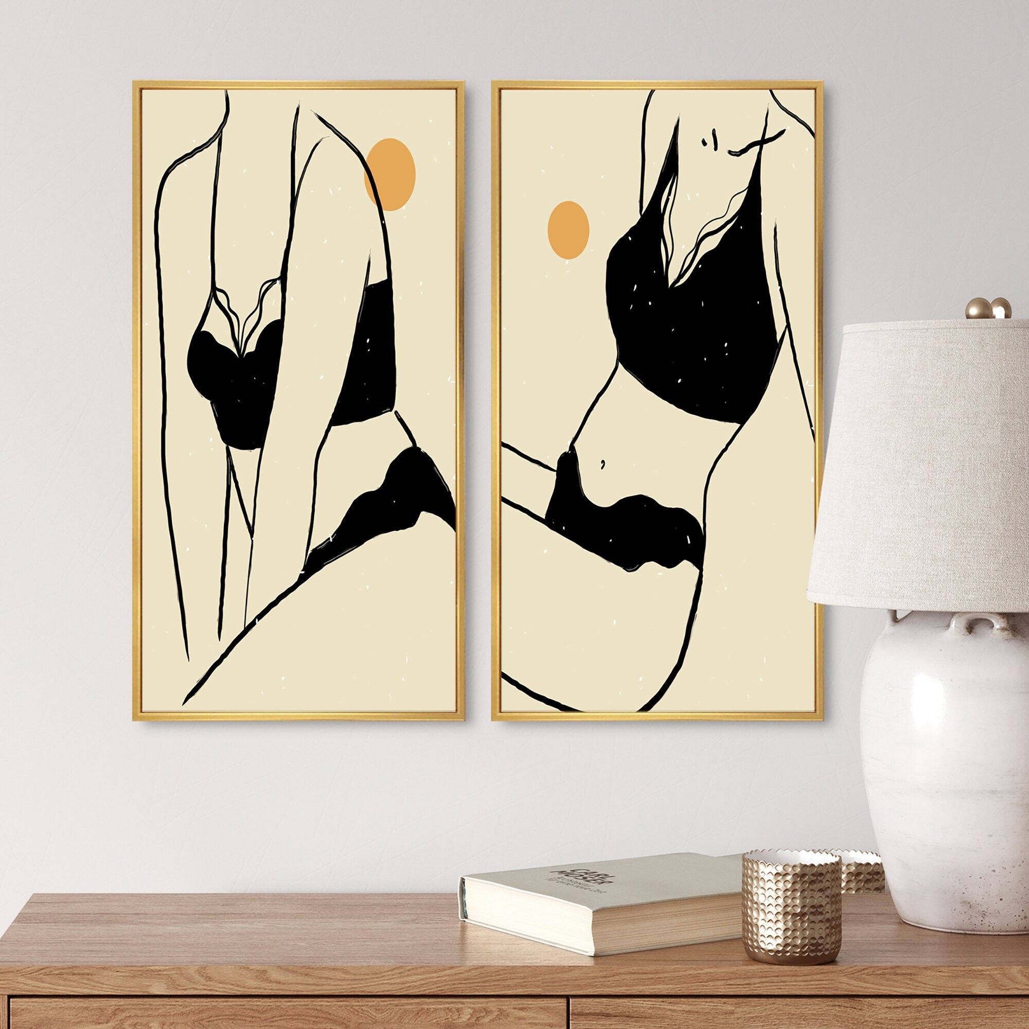 Designart "Minimalism Fashion Abstract VI" People Framed Art Set of 2 Pieces