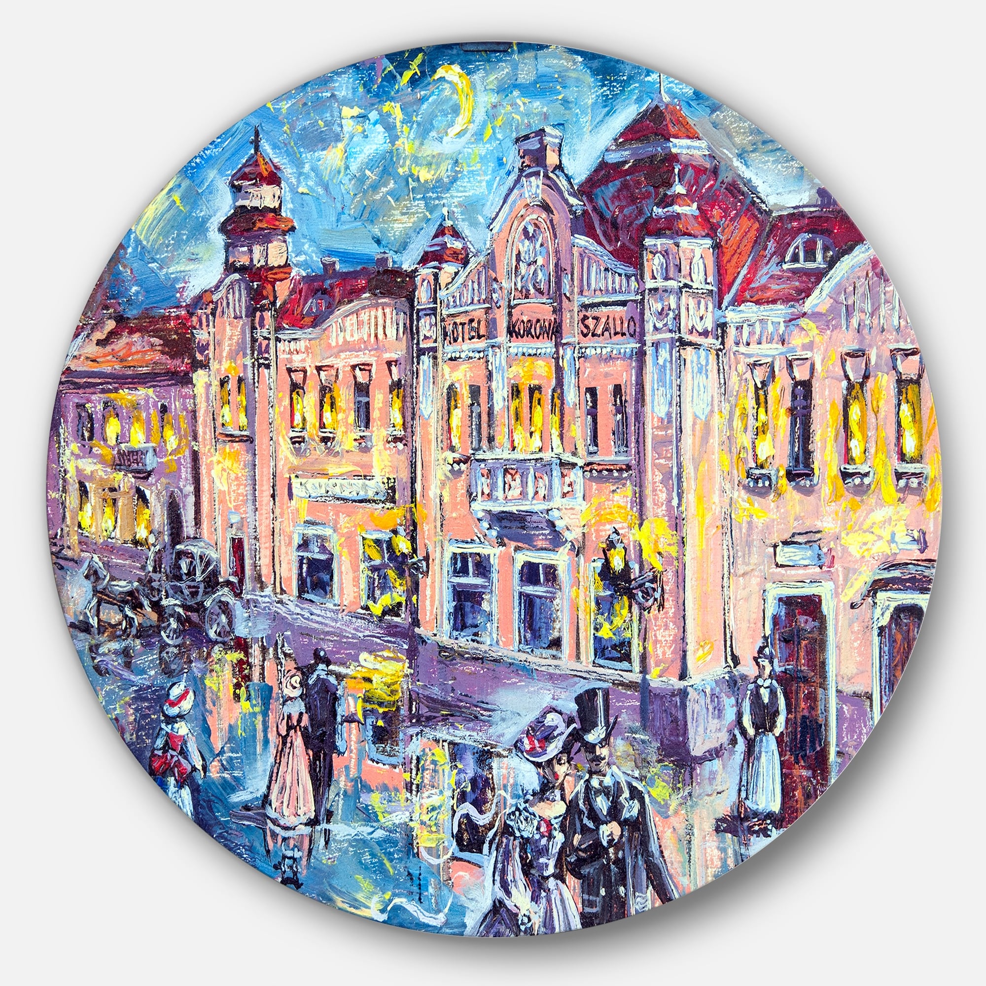 Designart 'City At Night With People' Cityscape Glossy Metal Wall Art