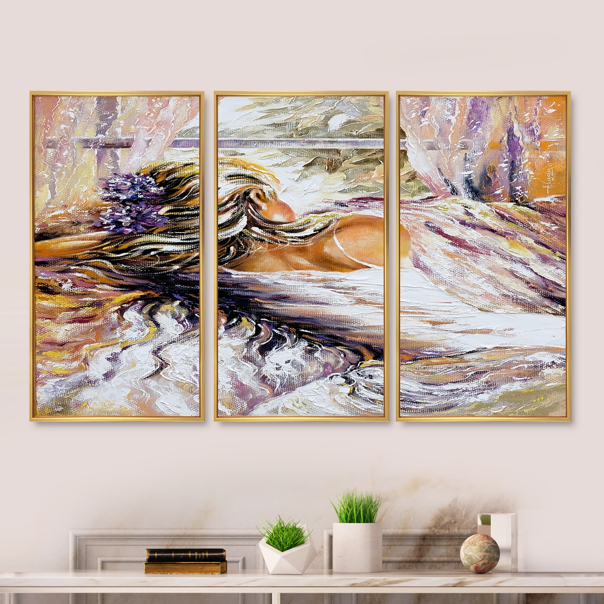 Designart "The River over the Girl" People Framed Wall Art Set of 3 - 4 Colors of Frames