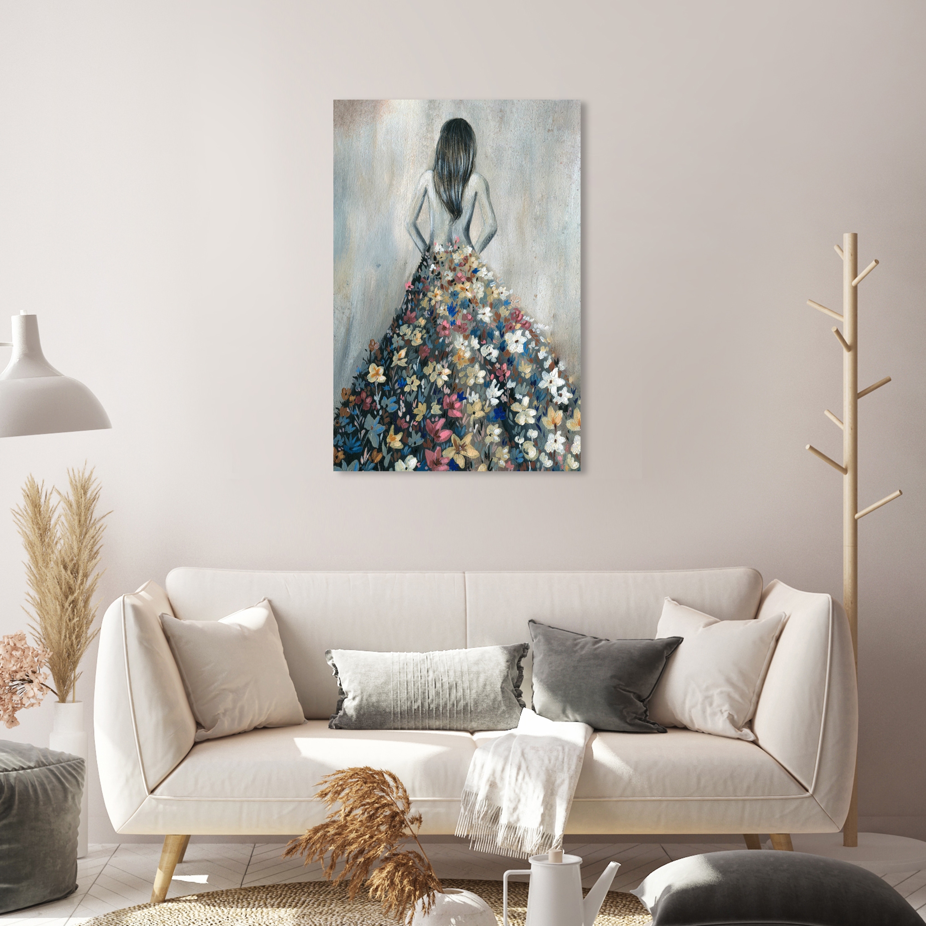 Wynwood Studio 'Girl with Flower Thoughts' People and Portraits Wall Art Canvas Print Silhouettes - Gray, Pink