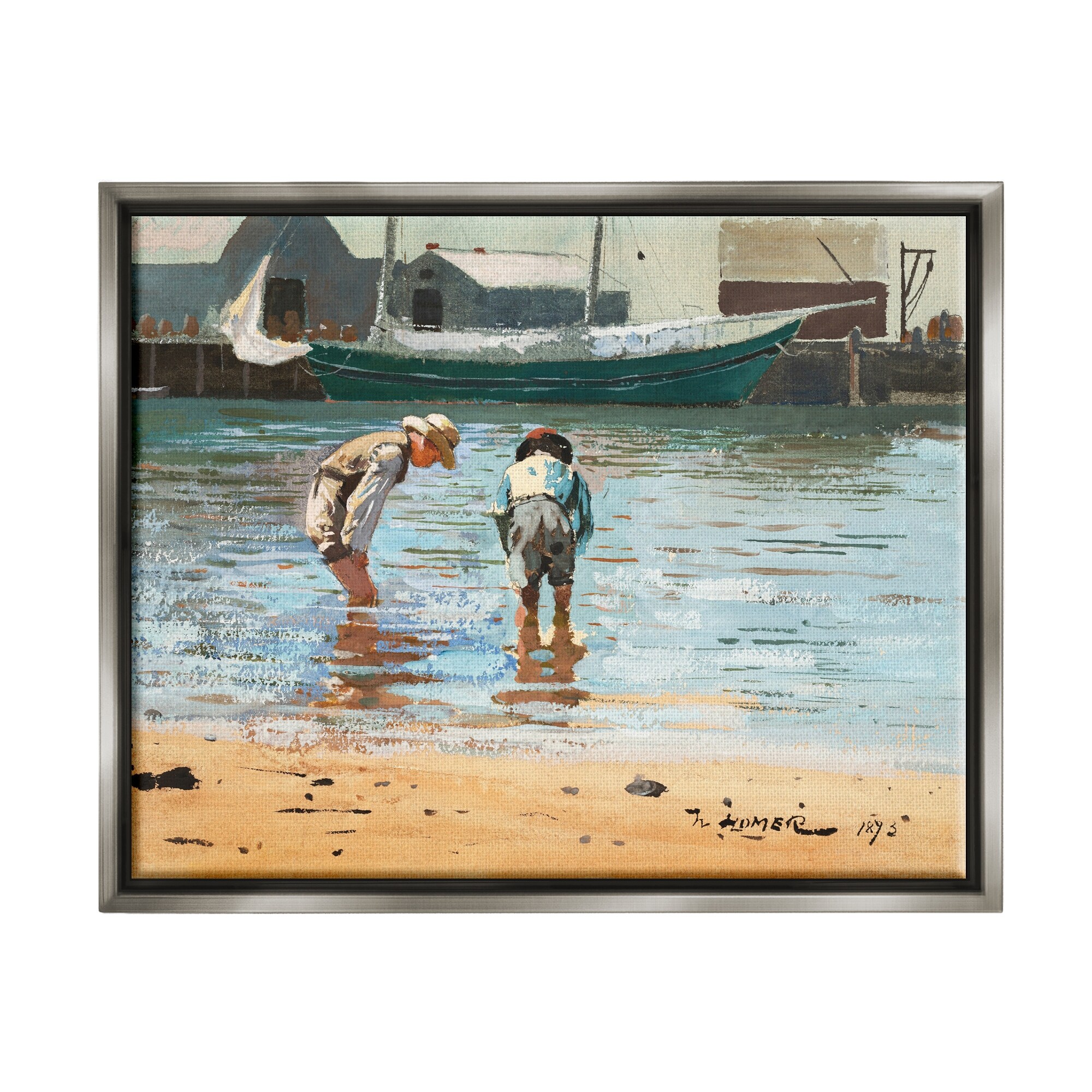 Stupell Industries People Shoreline Beach Marina Searching Sea Life Floater Frame, Design by Lettered and Lined