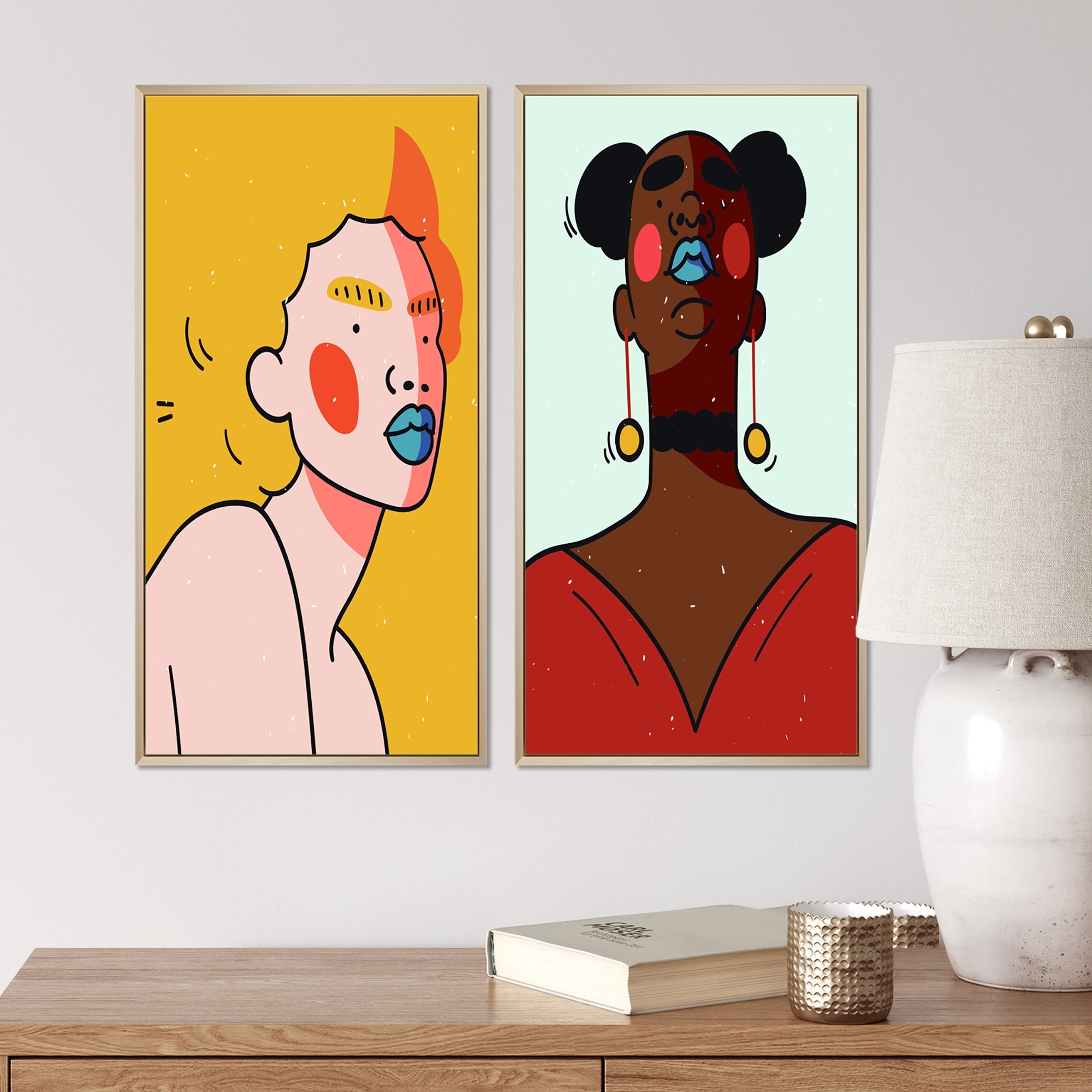 Designart "Retro Woman Portrait Minimalistic Pop Art X" People Framed Art Set of 2 Pieces