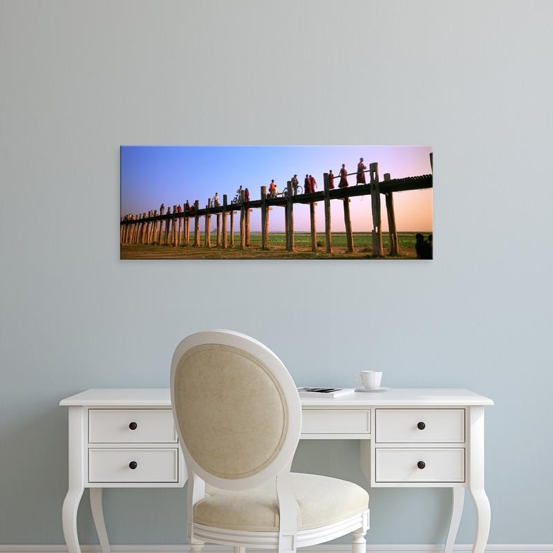 Easy Art Prints Panoramic Images's 'Myanmar, Mandalay, U Bein Bridge, People crossing over the bridge' Canvas Art