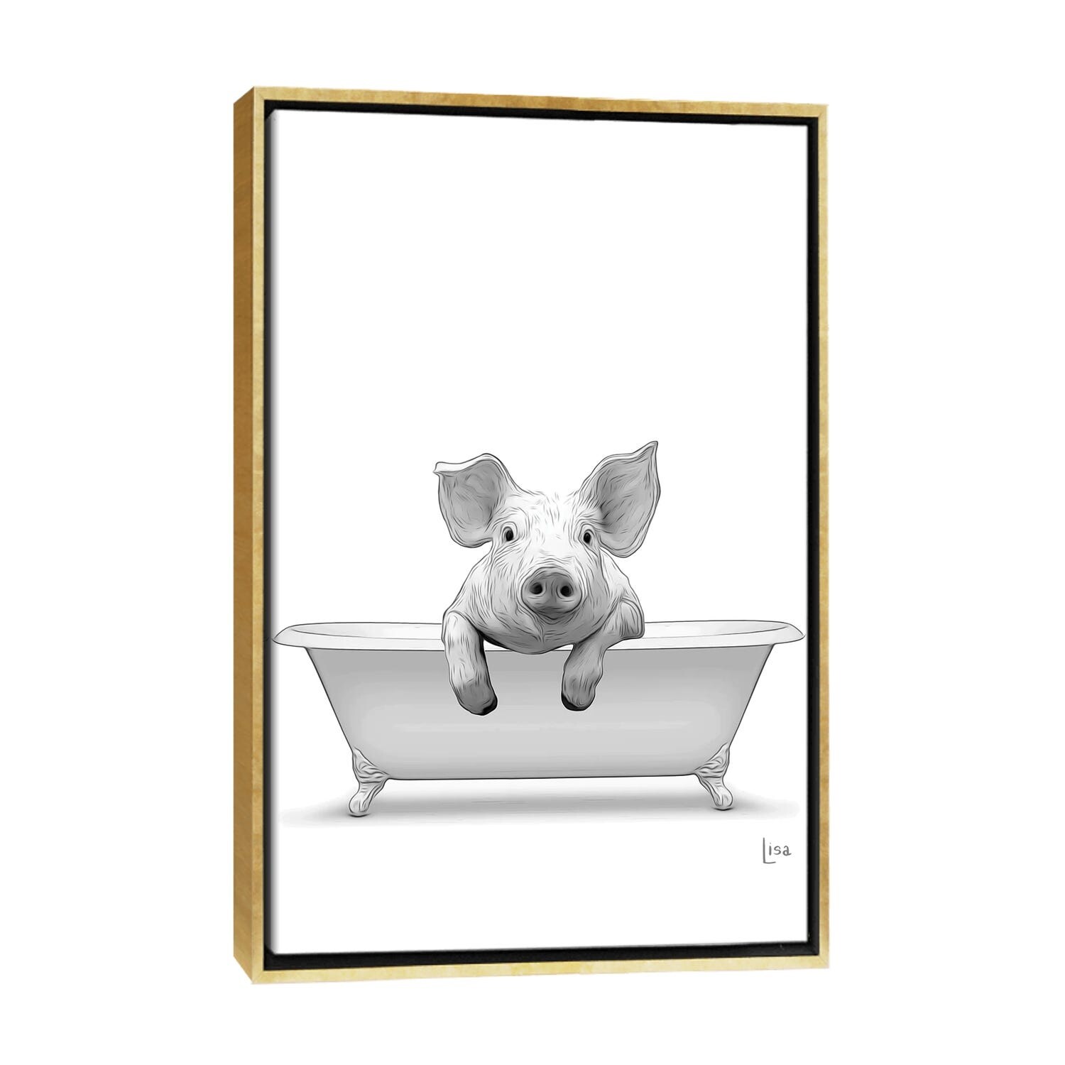 iCanvas "Pig In the Bath Bw" by Printable Lisa's Pets Framed
