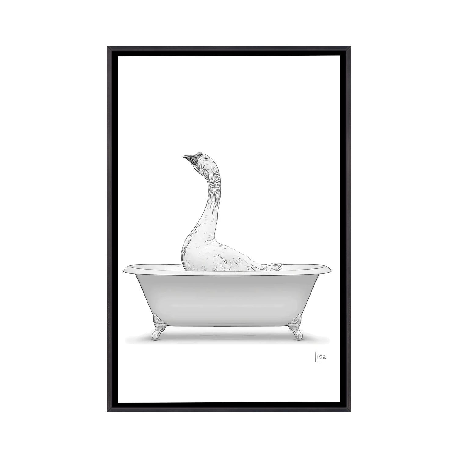 iCanvas "Gosling In Bw Bathtub" by Printable Lisa's Pets Framed
