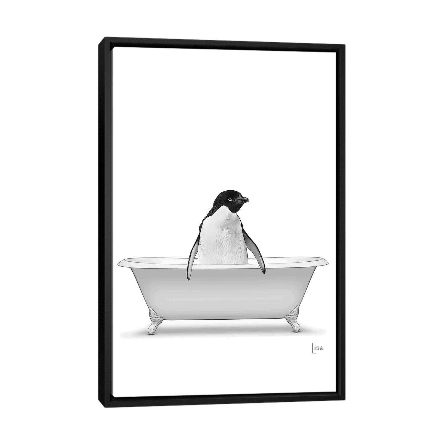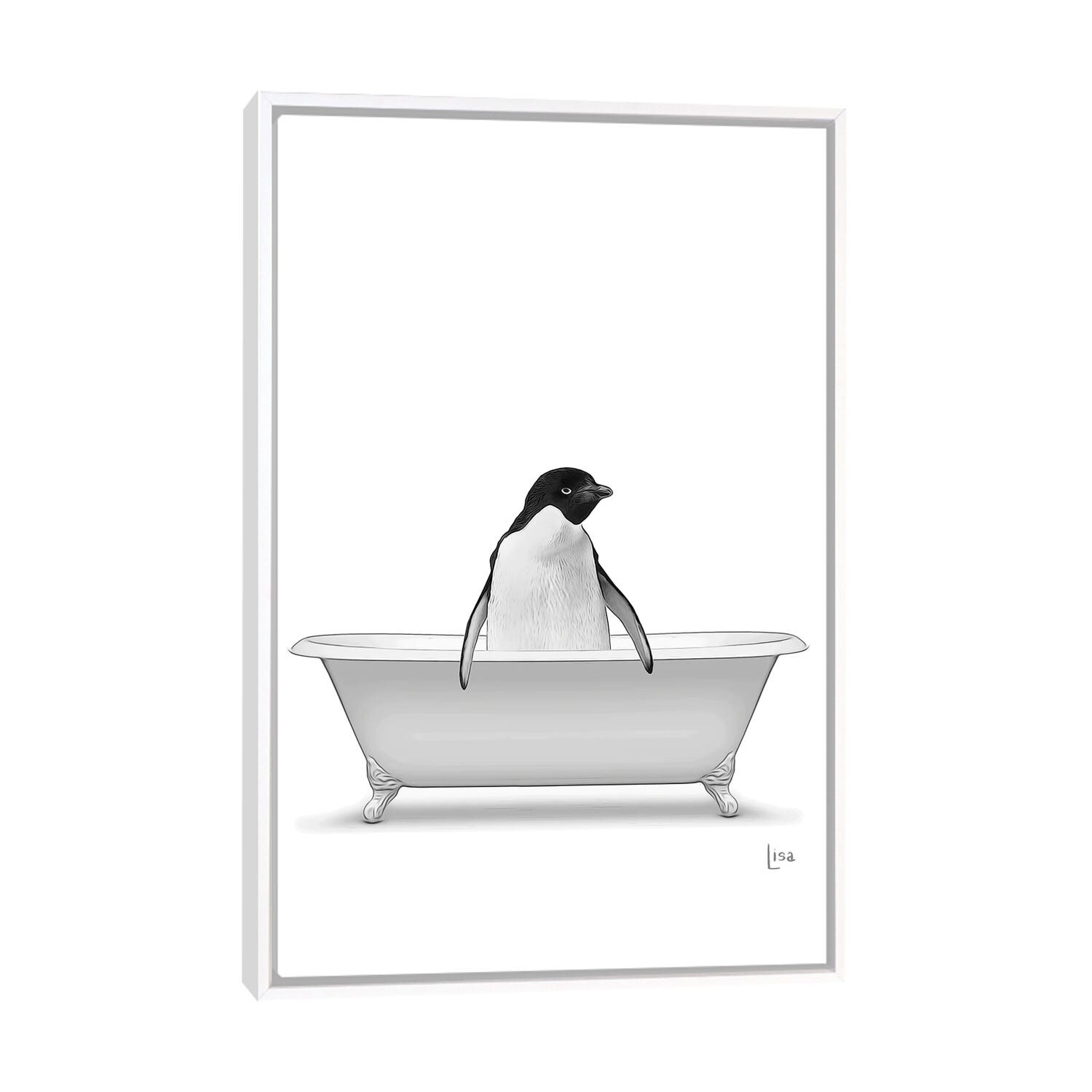 iCanvas "Penguin In Bathtub" by Printable Lisa's Pets Framed
