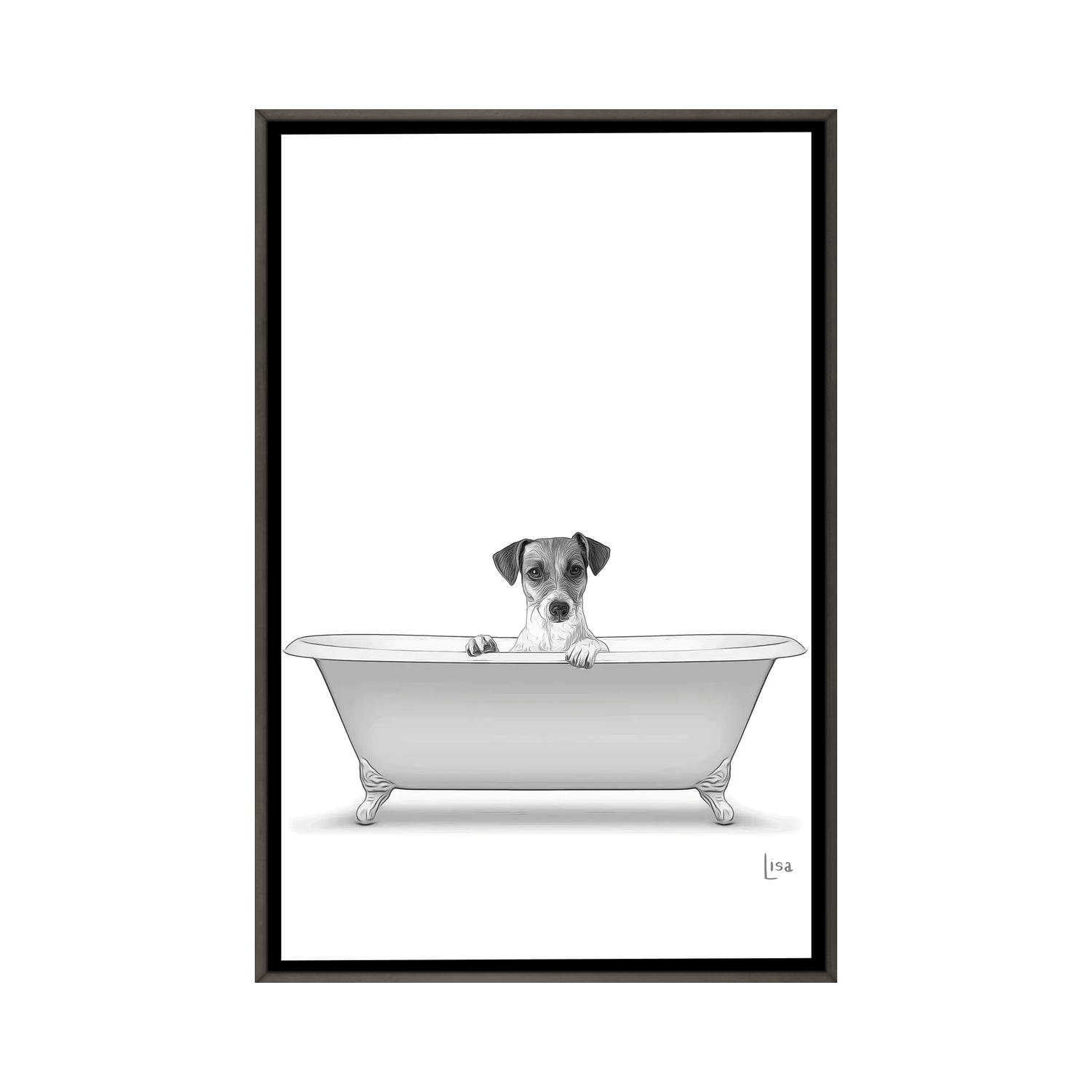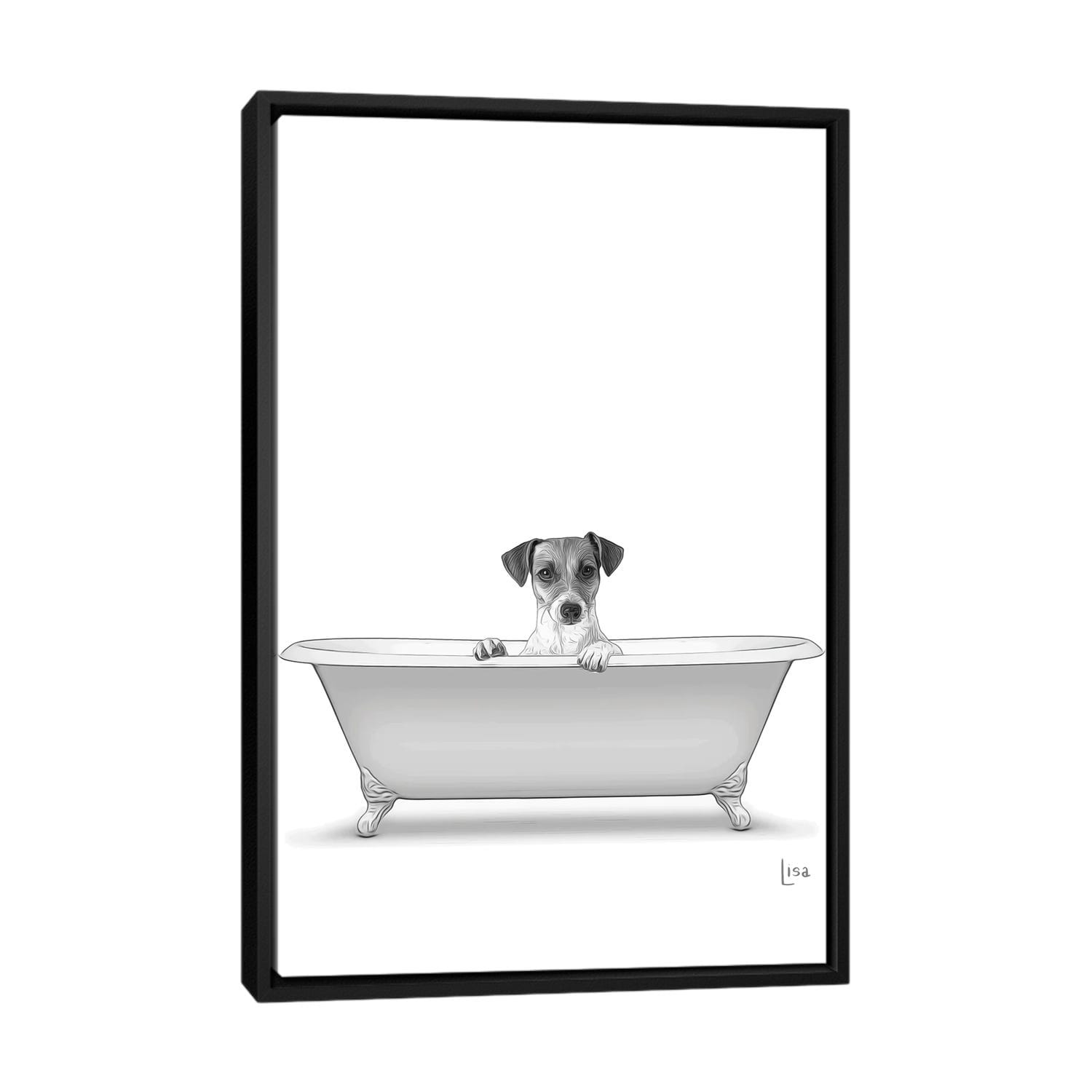 iCanvas "Dog In the Bath Bw" by Printable Lisa's Pets Framed