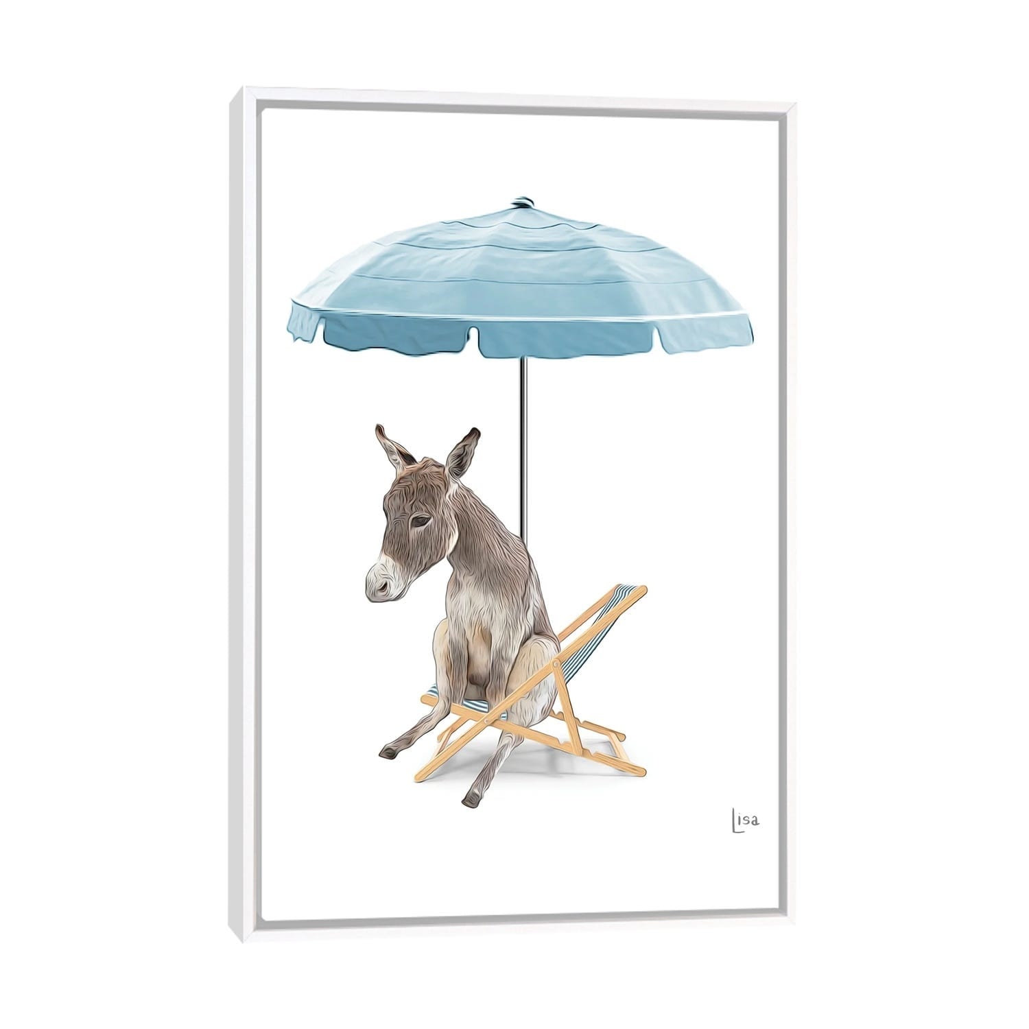 iCanvas "Donkey At the Beach on Deck Chair And Umbrella" by Printable Lisa's Pets Framed