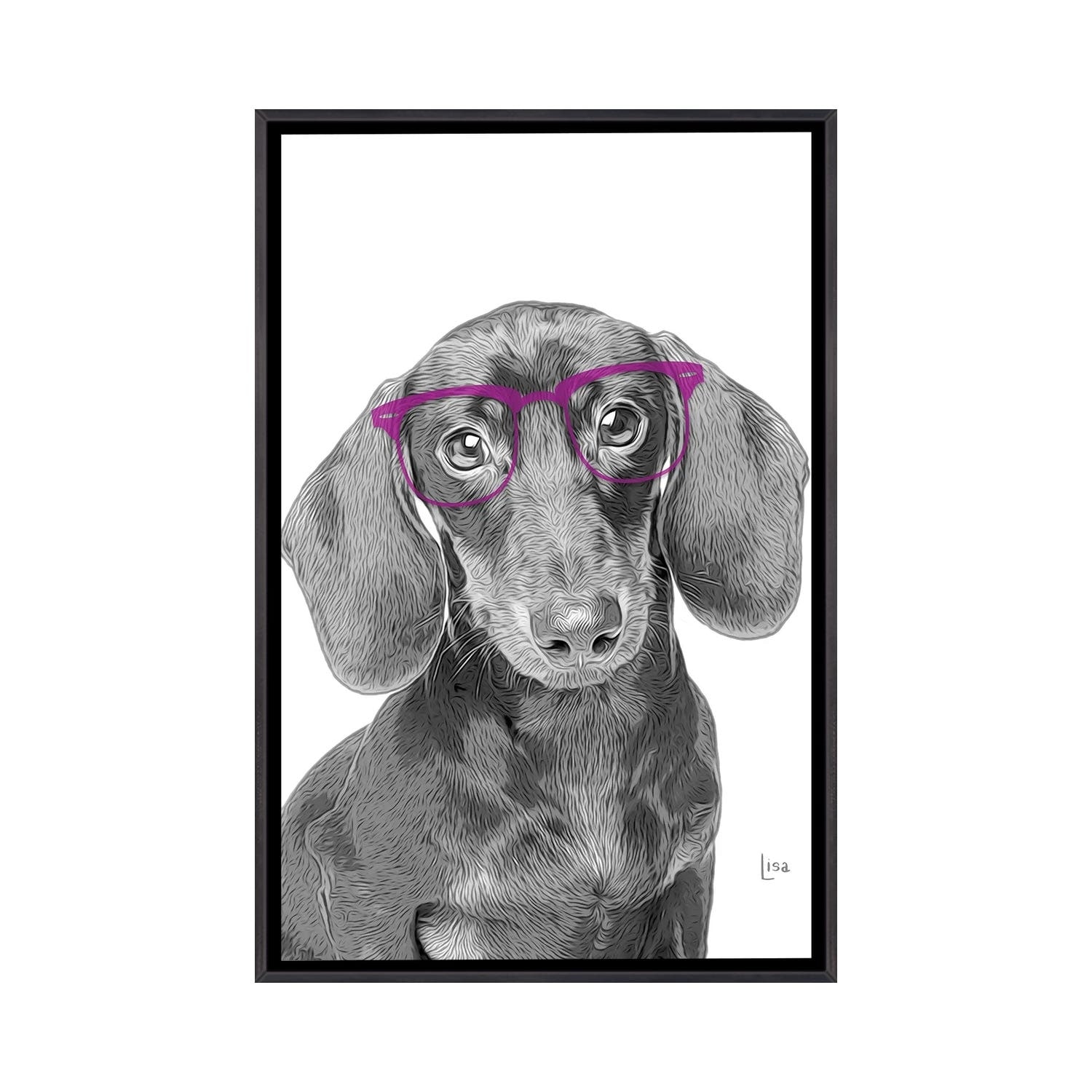 iCanvas "Dachshund With Violet Glasses" by Printable Lisa's Pets Framed