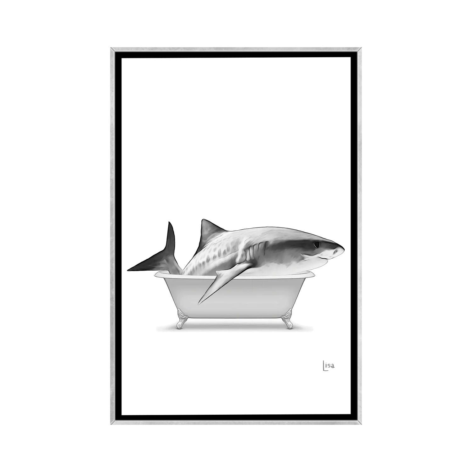 iCanvas "Sh-rk In Bathtub Black And White" by Printable Lisa's Pets Framed