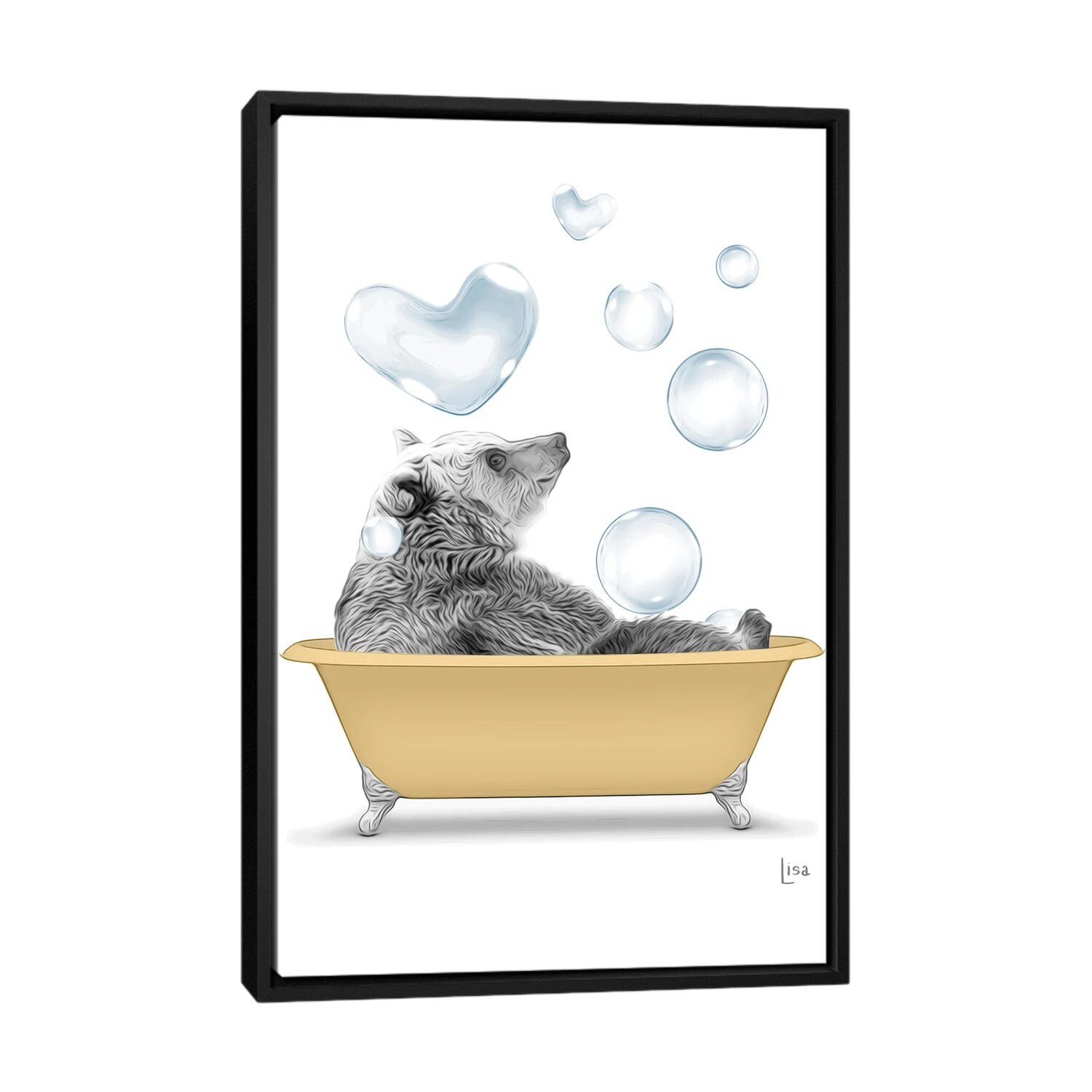 iCanvas "Bear In the Gold Bath" by Printable Lisa's Pets Framed