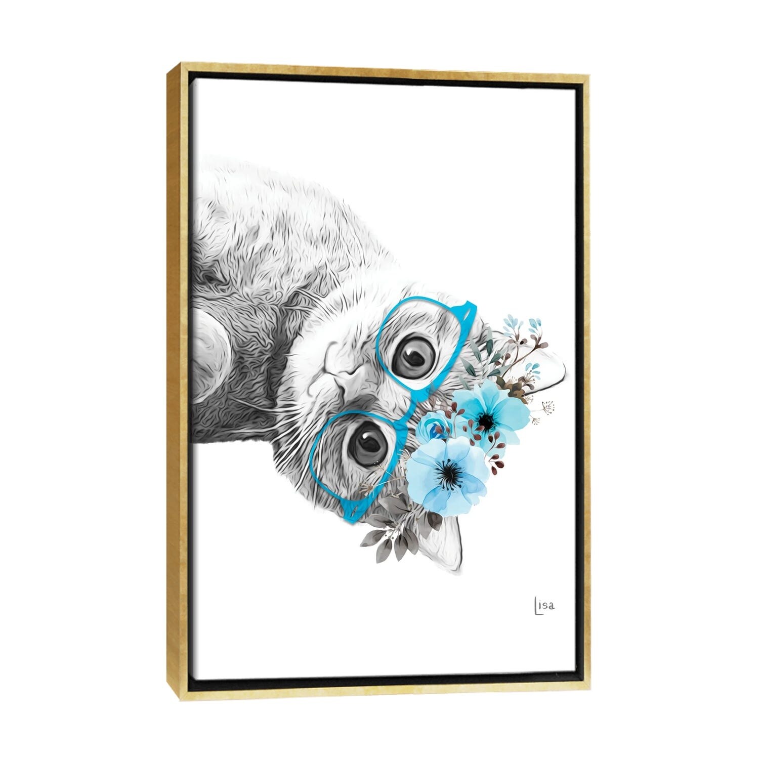 iCanvas "Cat With Glasses And Blue Flower Crown" by Printable Lisa's Pets Framed