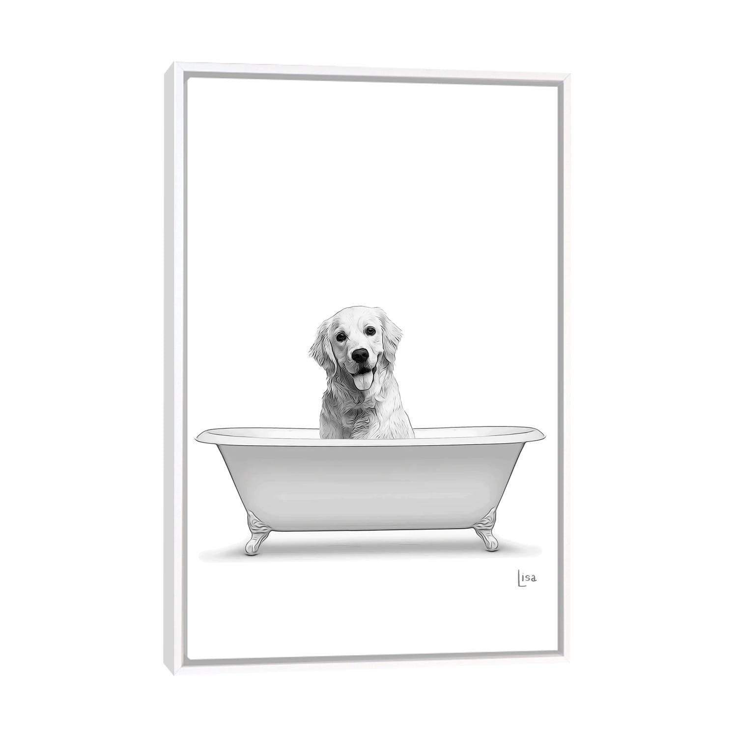 iCanvas "Golden Retriever Dog in Bathtub" by Printable Lisa's Pets Framed Canvas Print