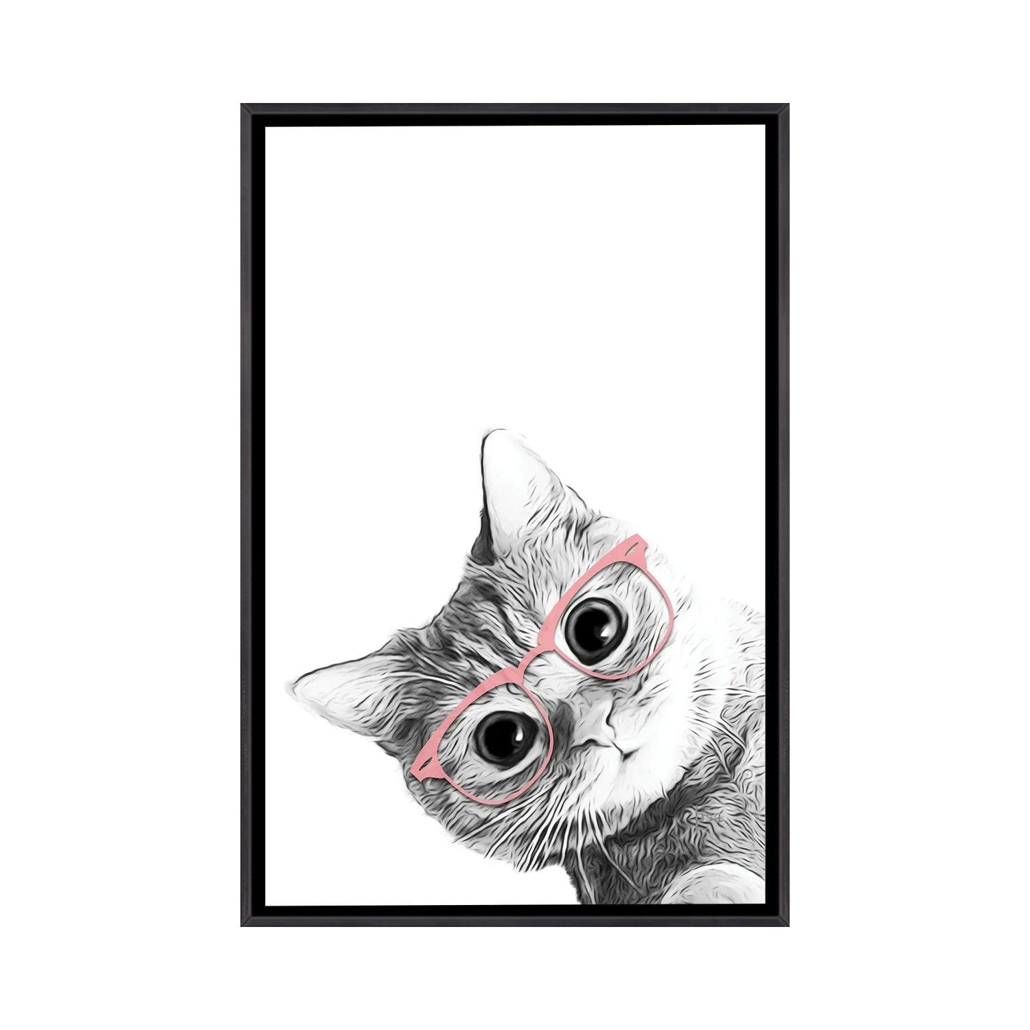 iCanvas "Baby Cat With Pink Glasses" by Printable Lisa's Pets Framed