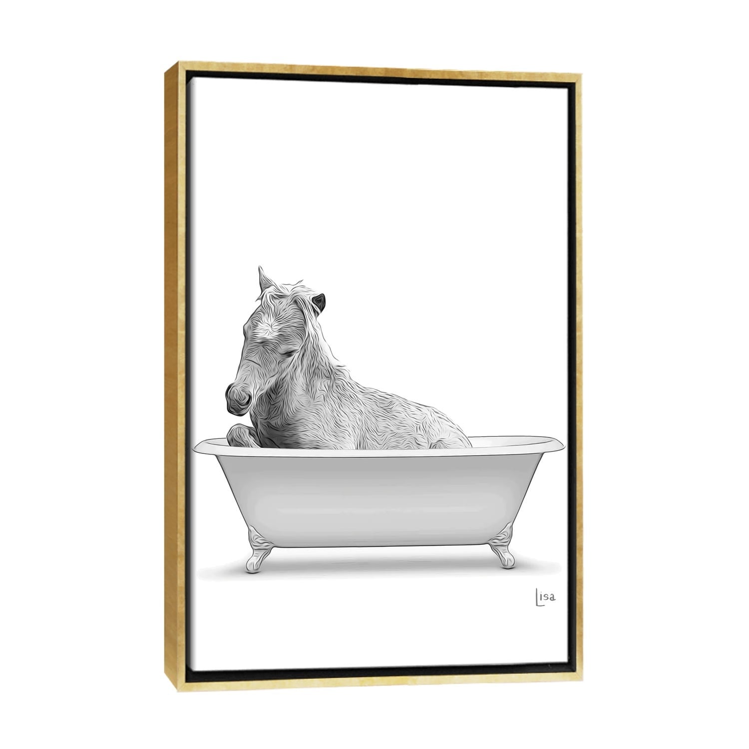 iCanvas "Horse In the Bath Bw" by Printable Lisa's Pets Framed Canvas Print