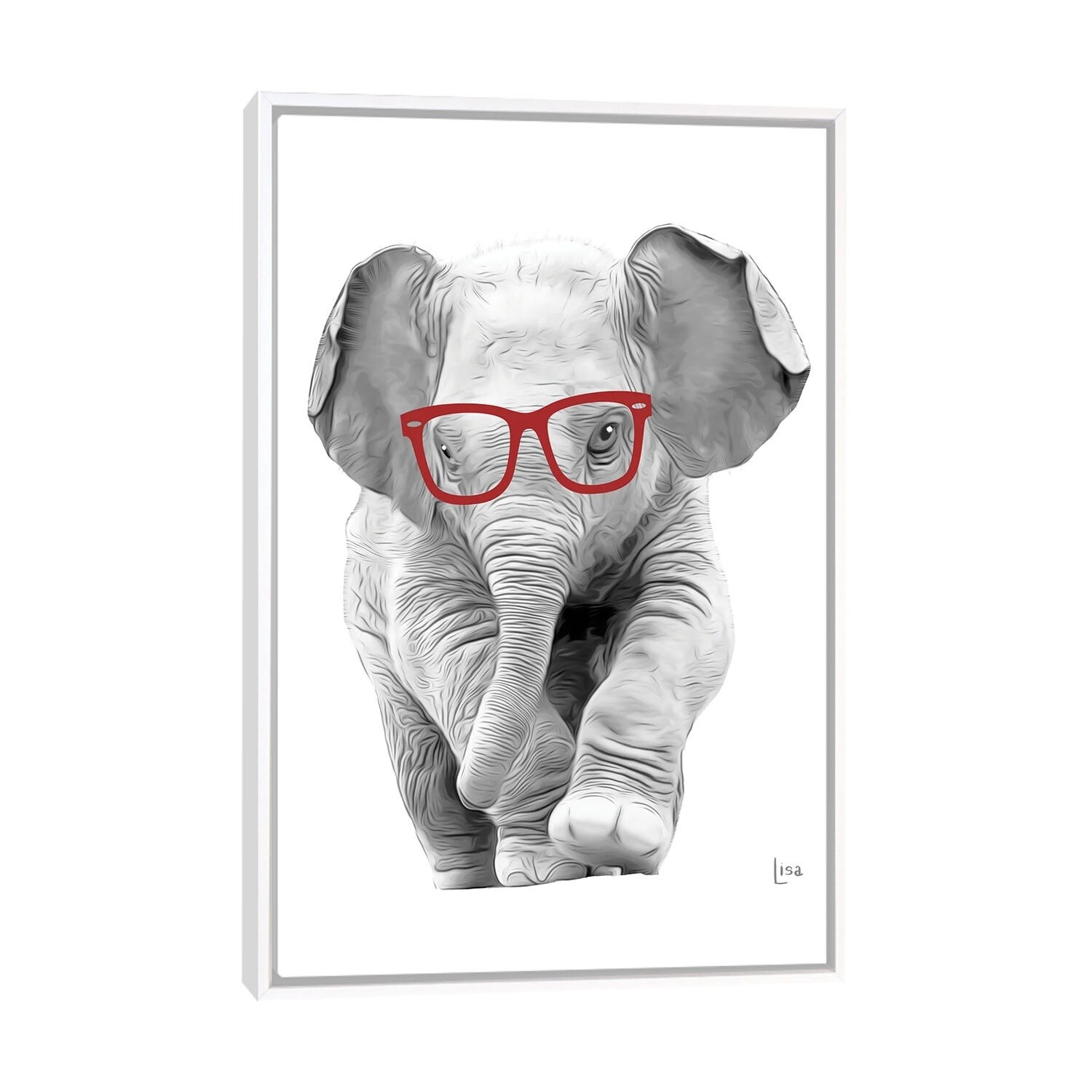 iCanvas "Elephant With Red Glasses" by Printable Lisa's Pets Framed